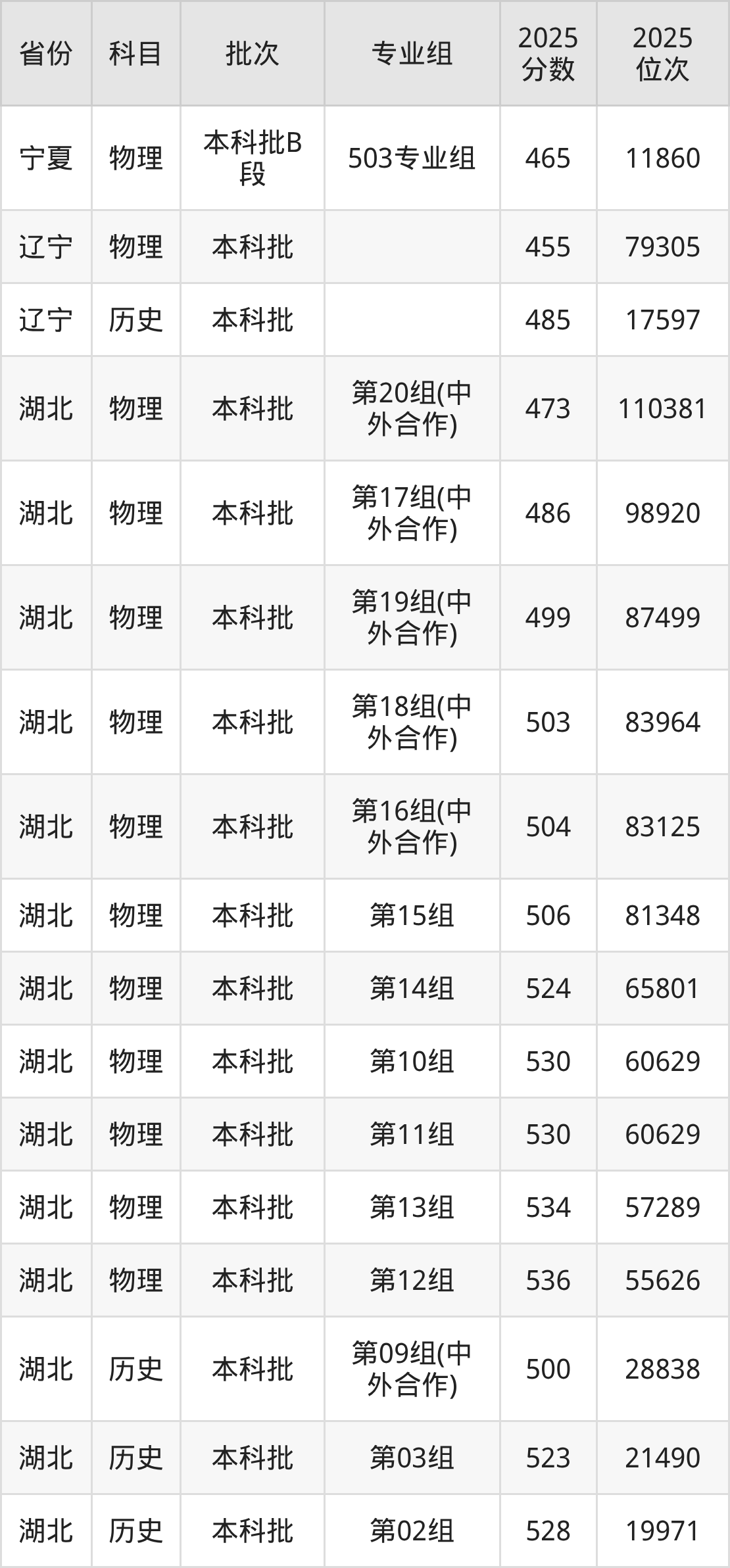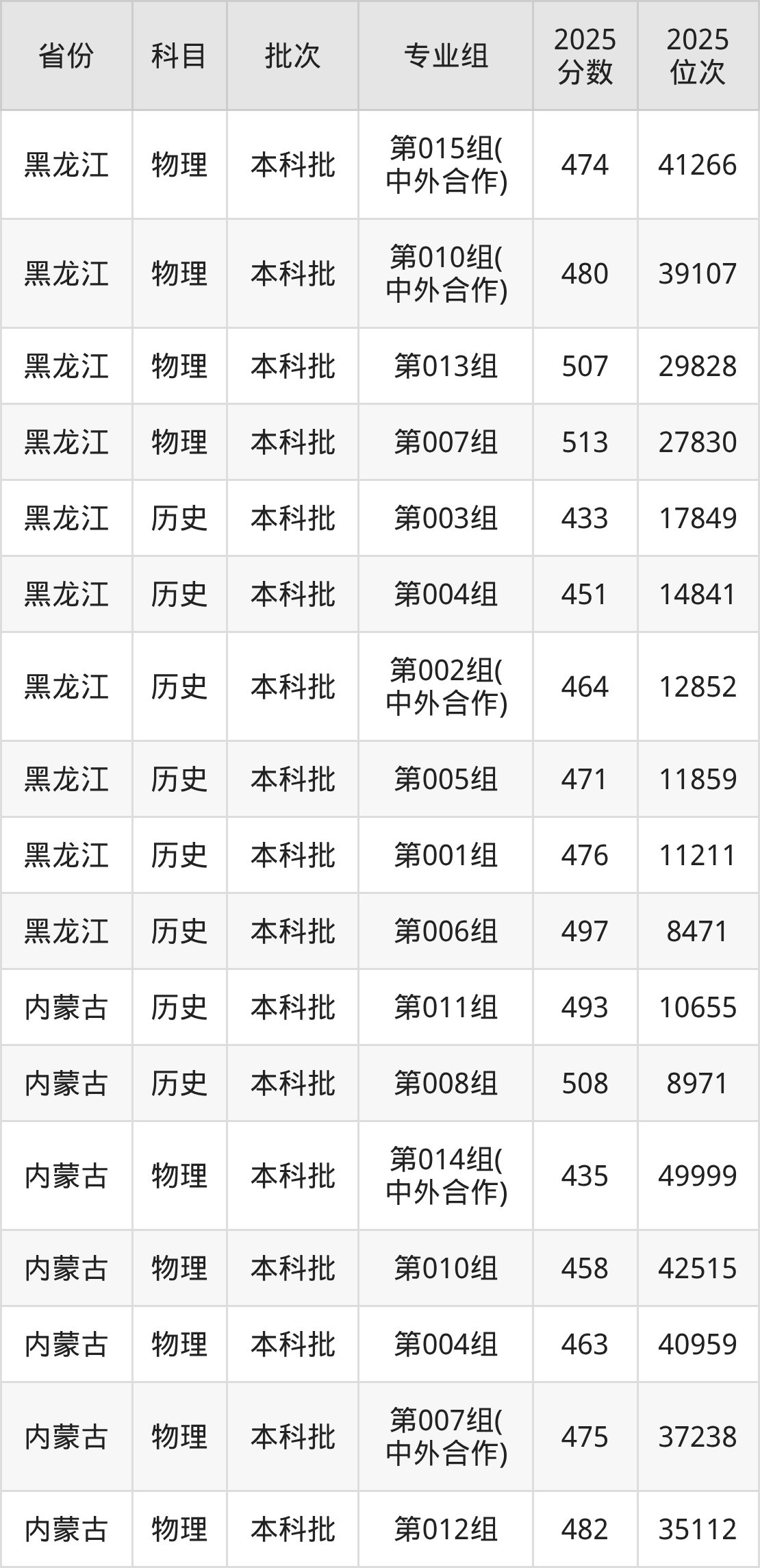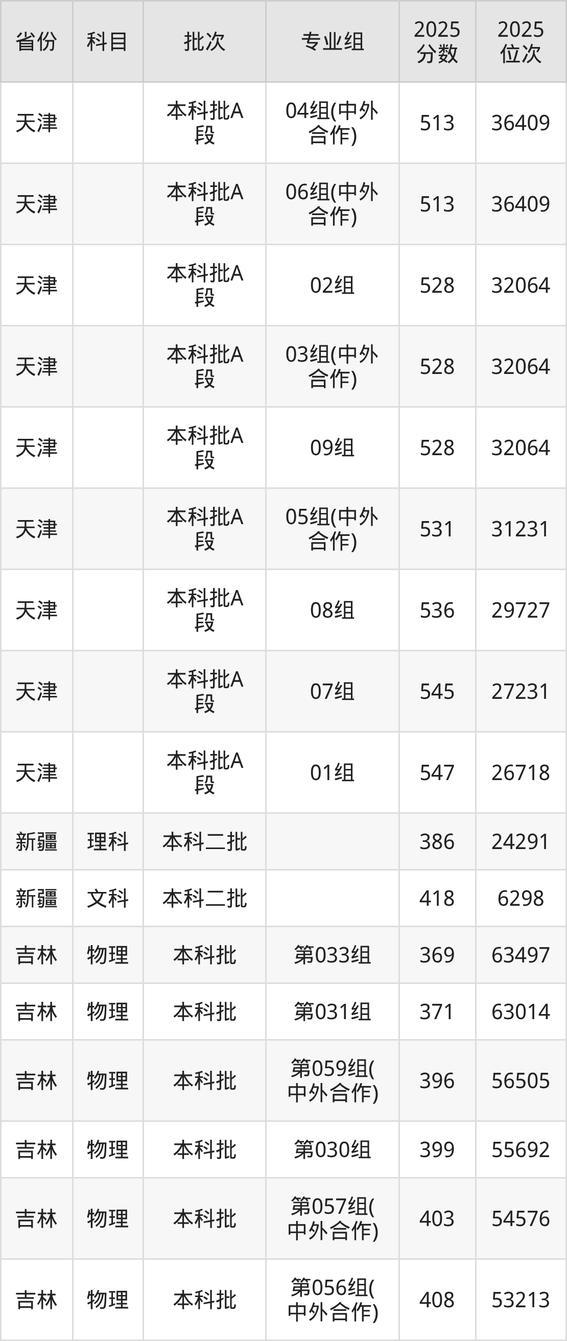 长春大学第010组(中外合作):2025年投档录取最低分为480分,录取最低位次为39107名。