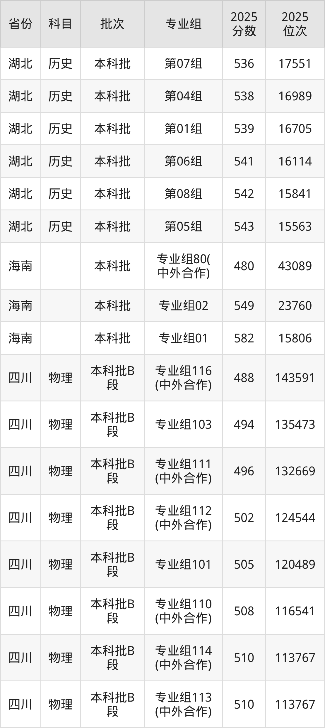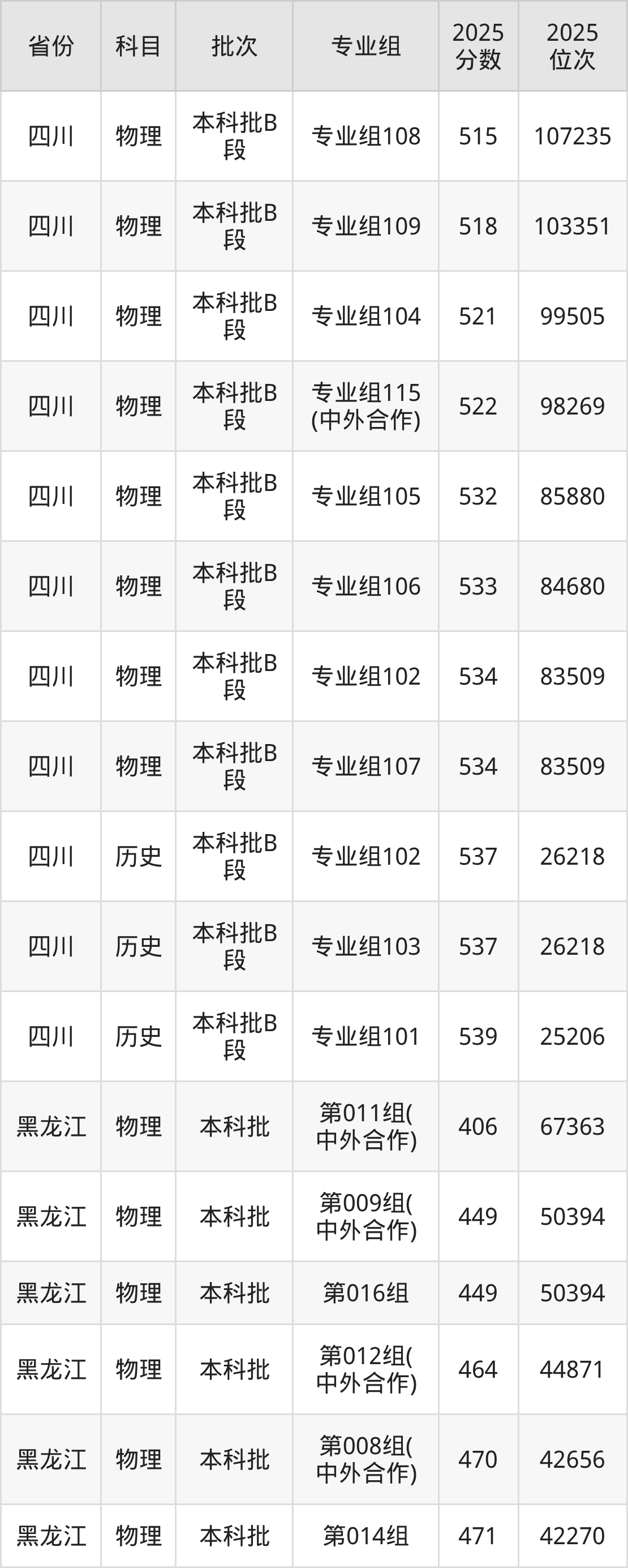 长春大学专业组114(中外合作):2025年投档录取最低分为510分,录取最低位次为113767名。