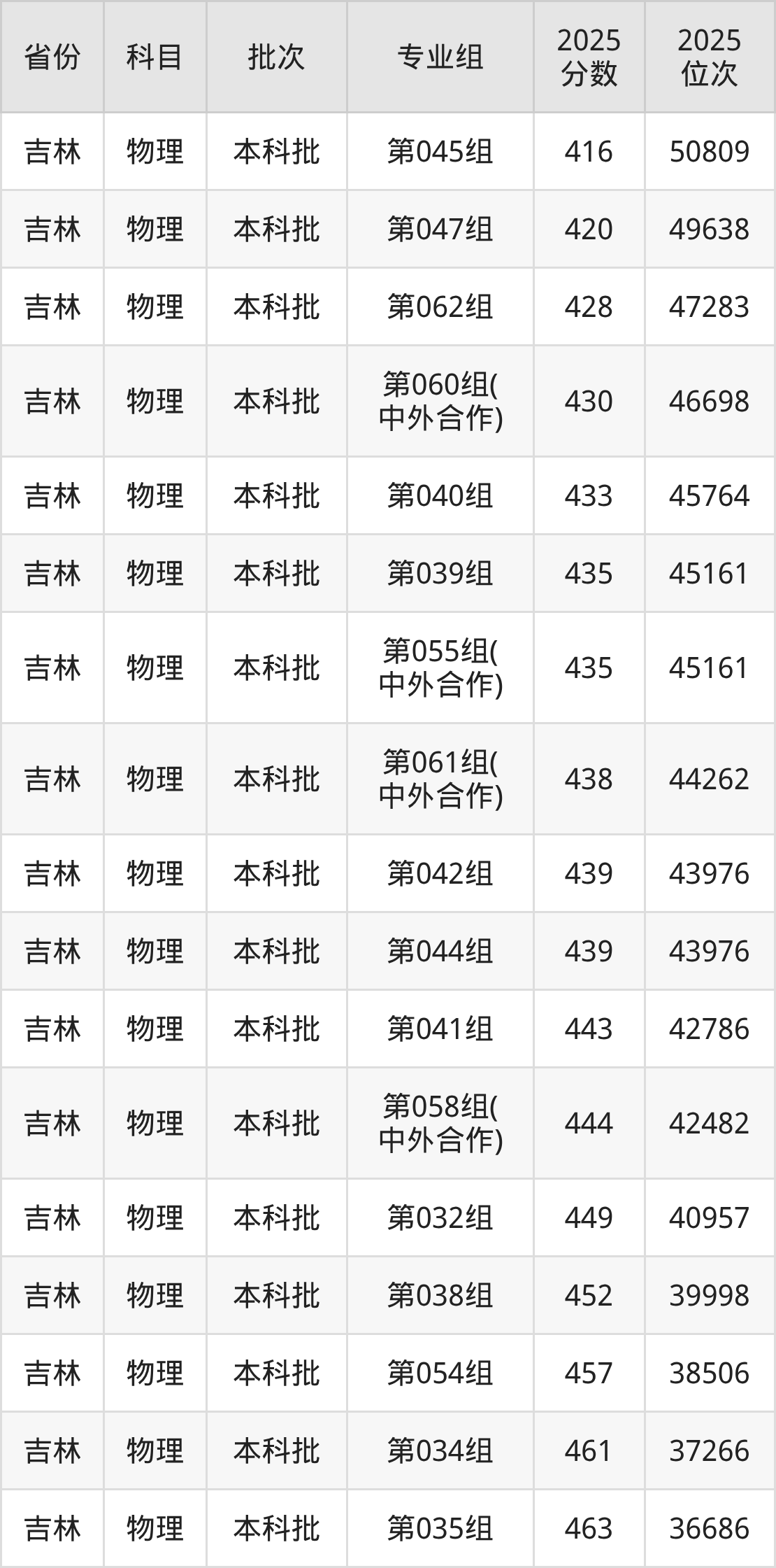 长春大学第009组(中外合作):2025年投档录取最低分为449分,录取最低位次为50394名。