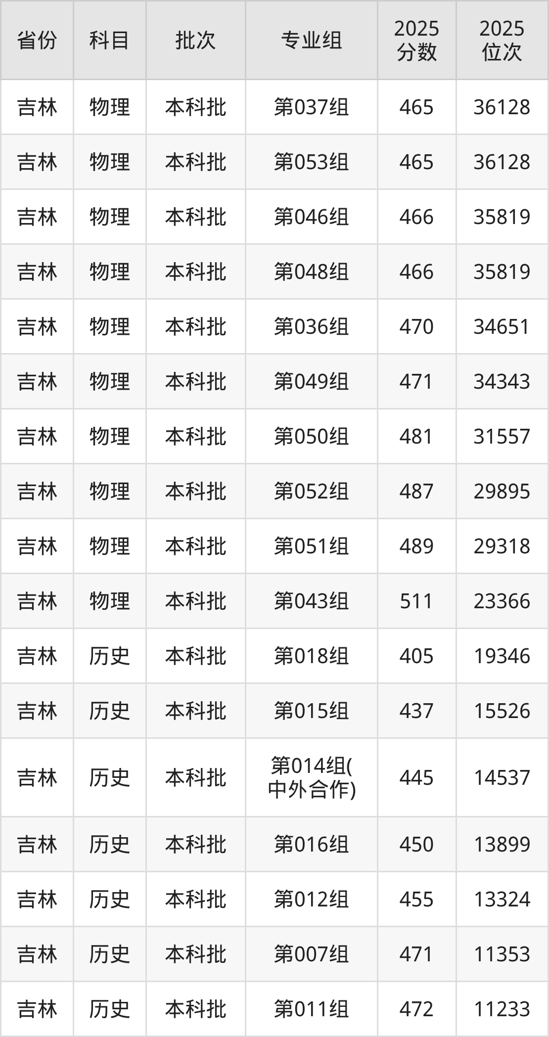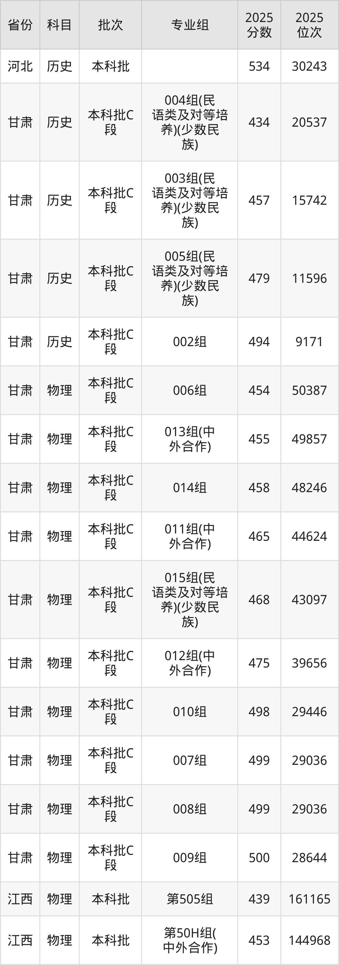 长春大学第010组:2025年投档录取最低分为458分,录取最低位次为42515名。