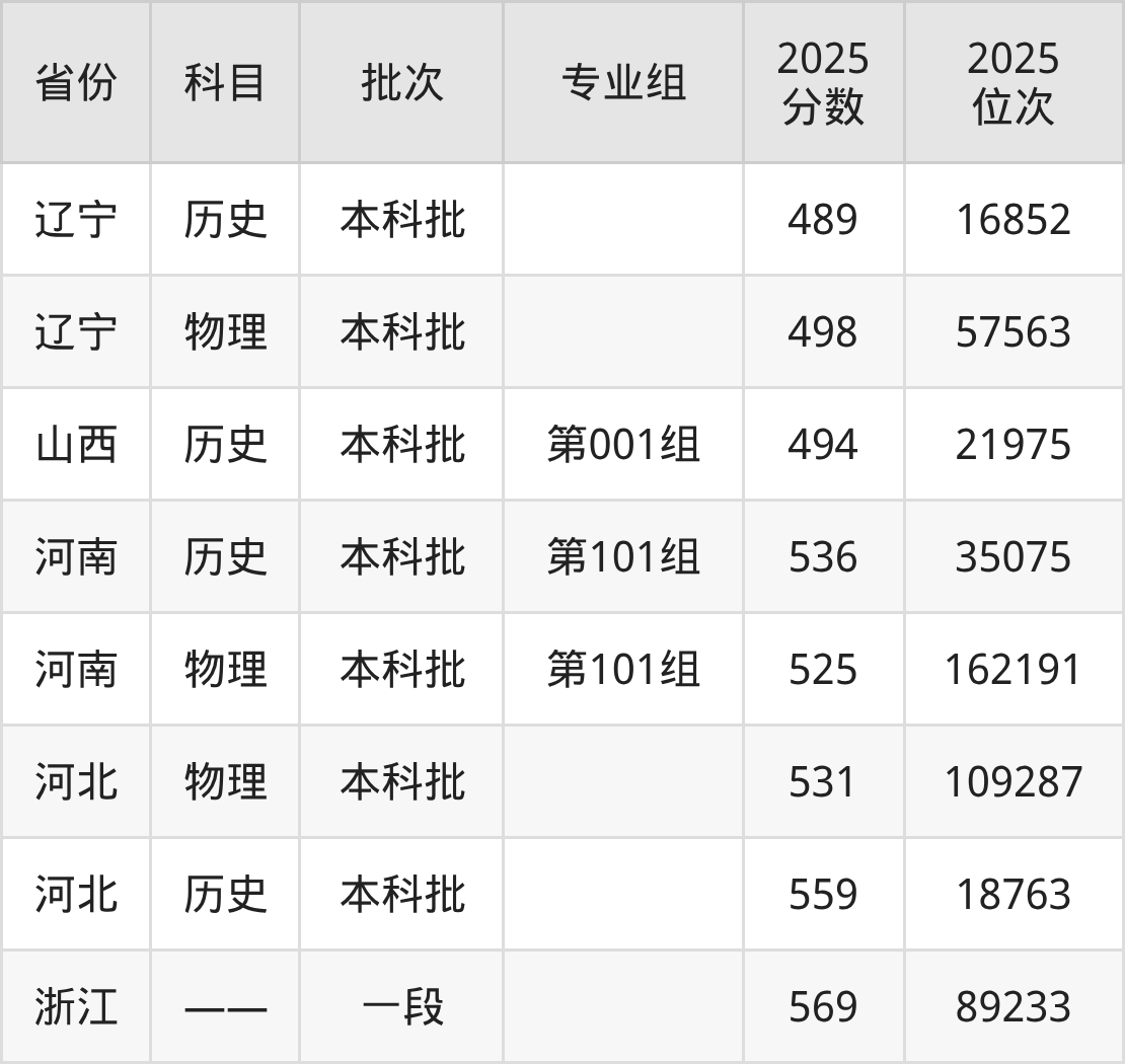 2025年在本科历史类进行招生,各专业组分数线详情如下: