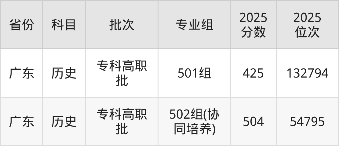 广州工程技术职业学院501组:2025年投档录取最低分为425分,录取最低位次为132794名。