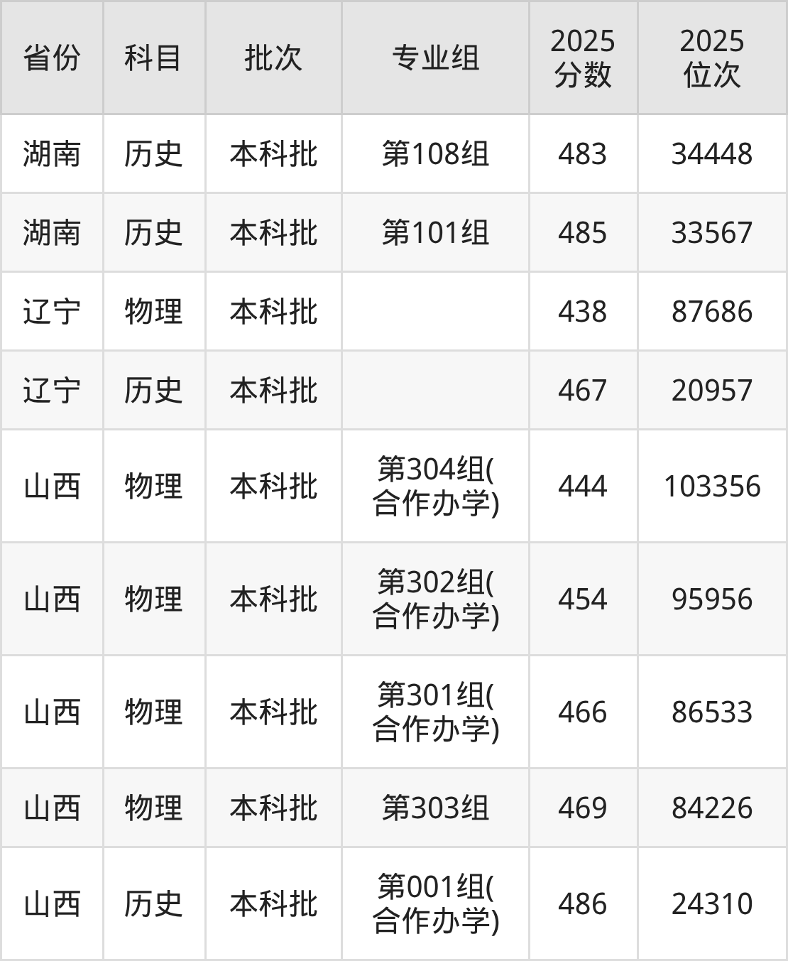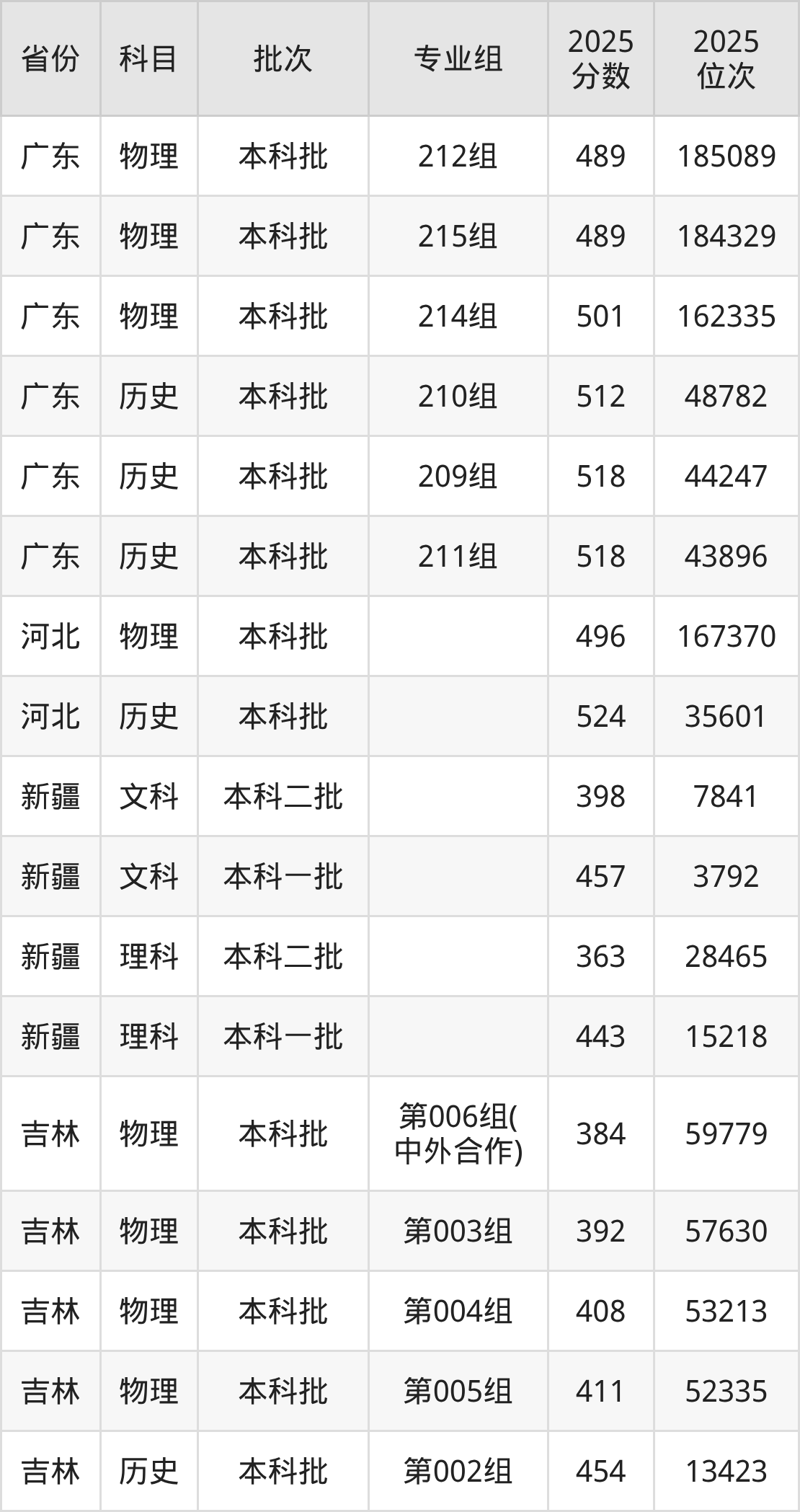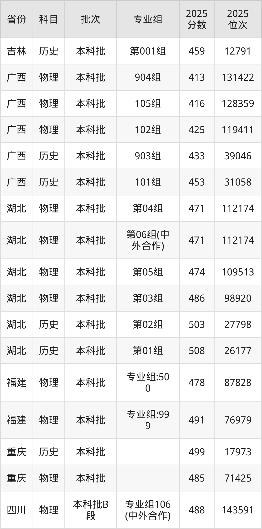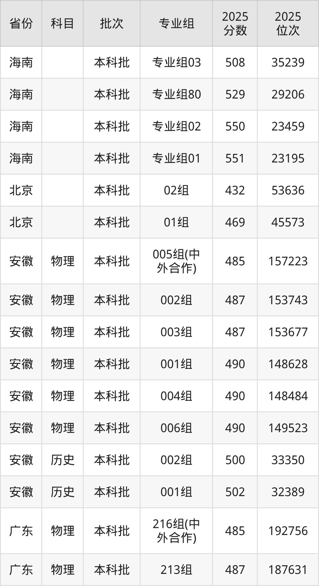 2025年在本科物理类进行招生,各专业组分数线详情如下: