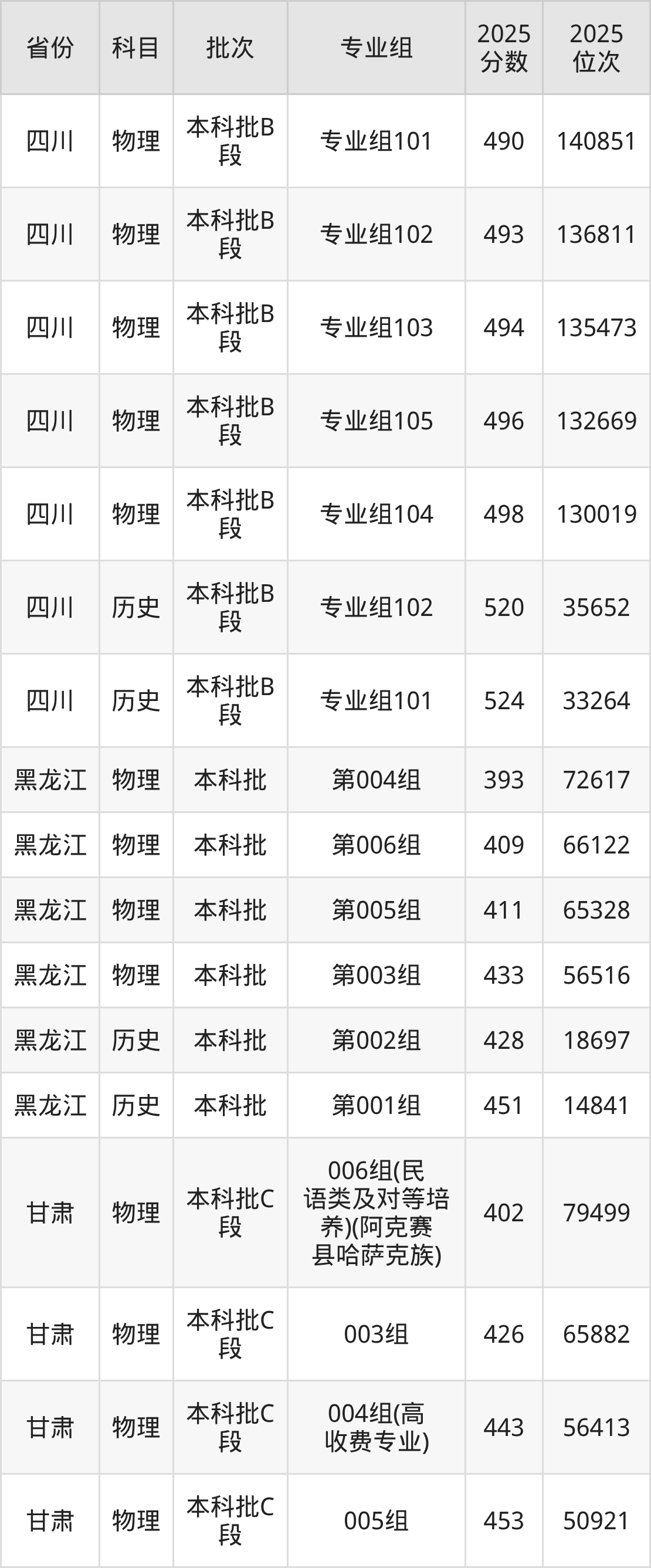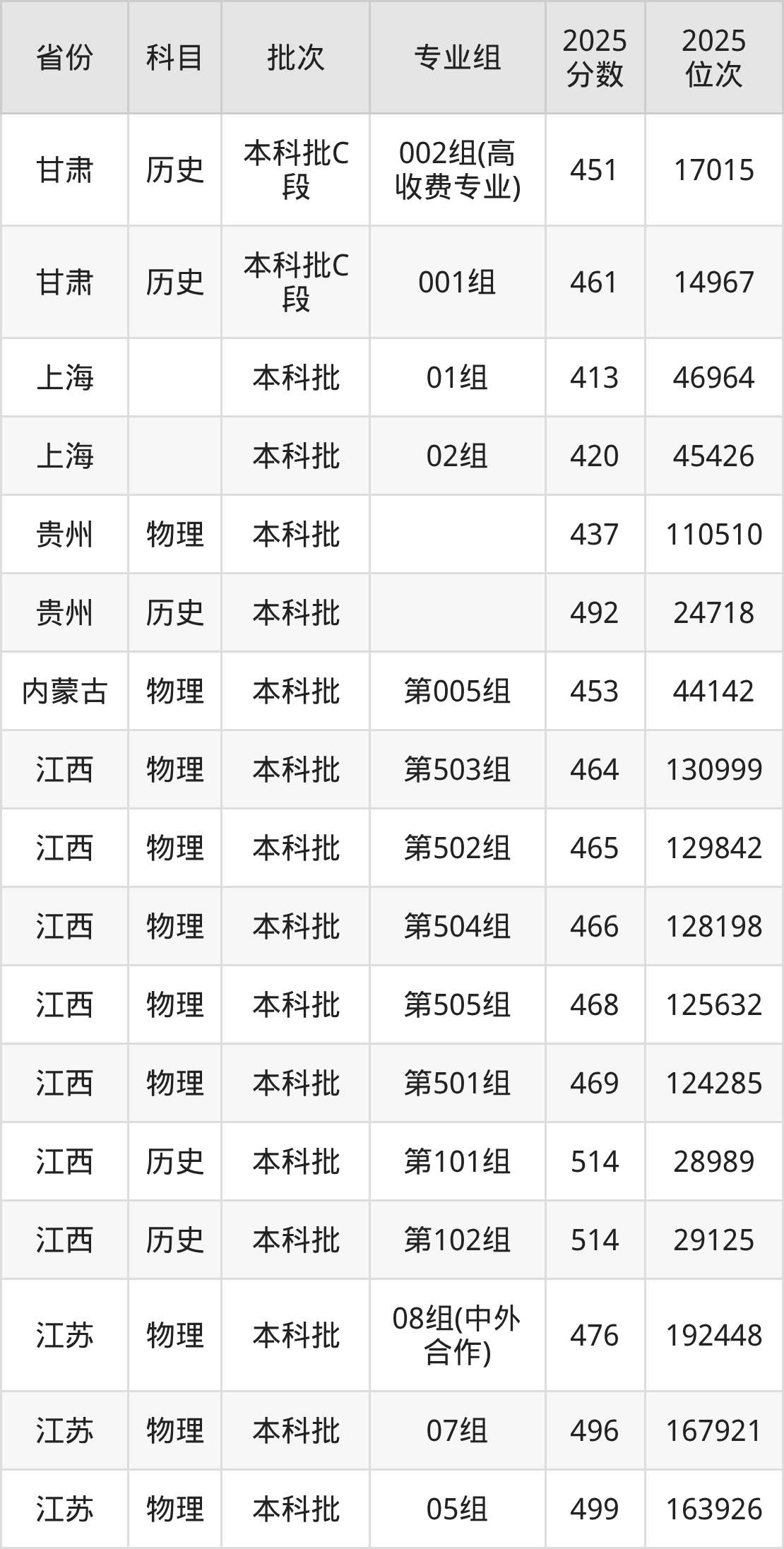 2025年投档录取最低分为499分,录取最低位次为17973名。