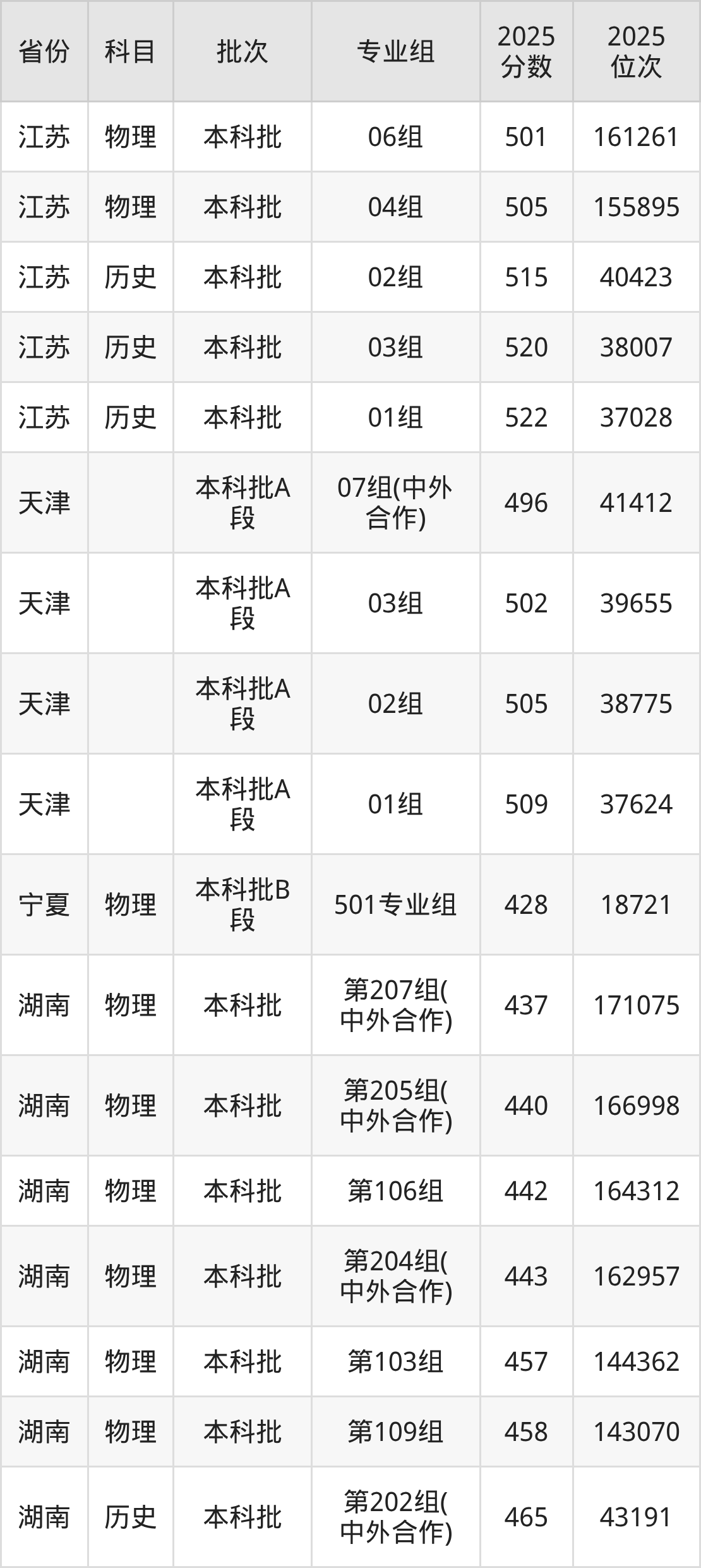 土木工程(中外合作办学):2025年投档录取最低分为496分。
