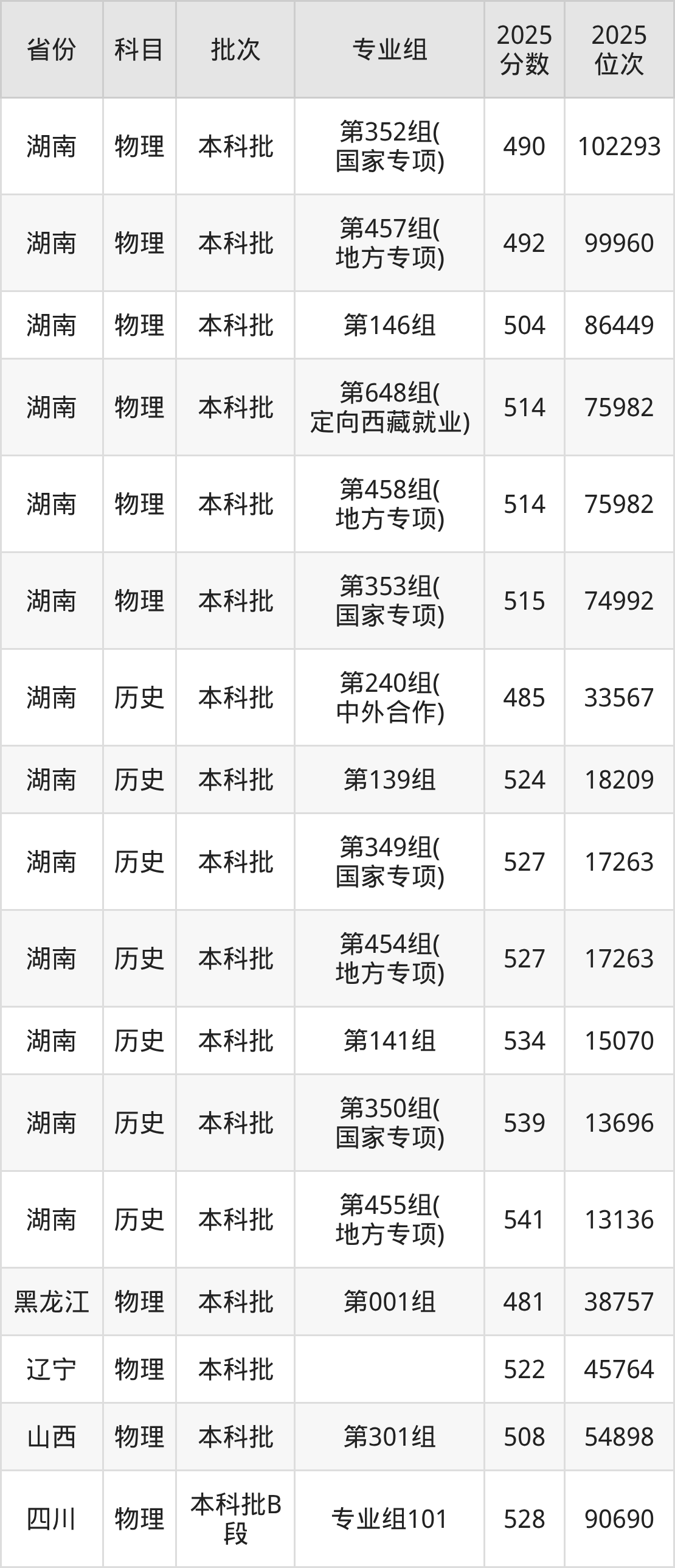 下面是2025年湖南第一师范学院全国录取分数线一览表,请查阅。