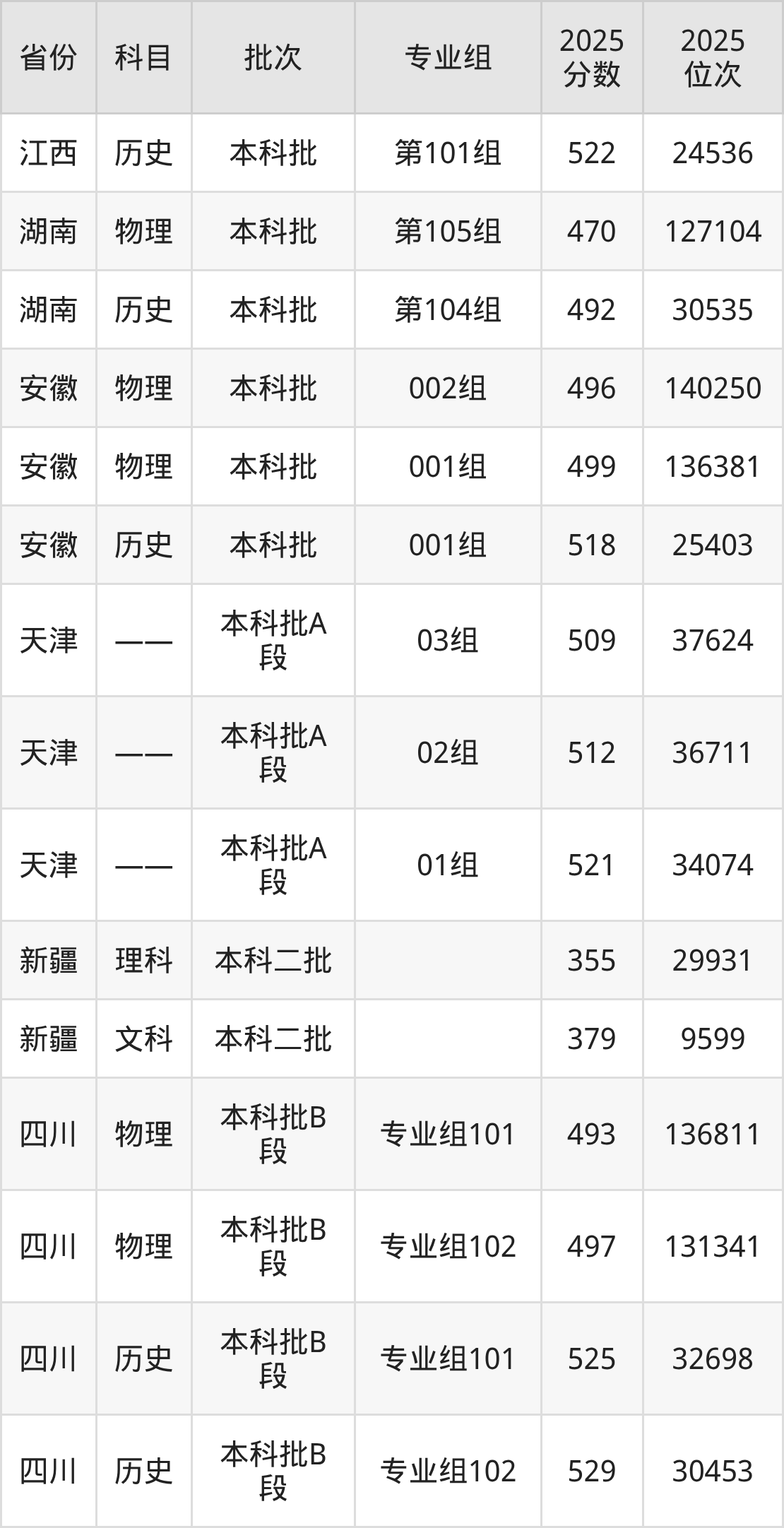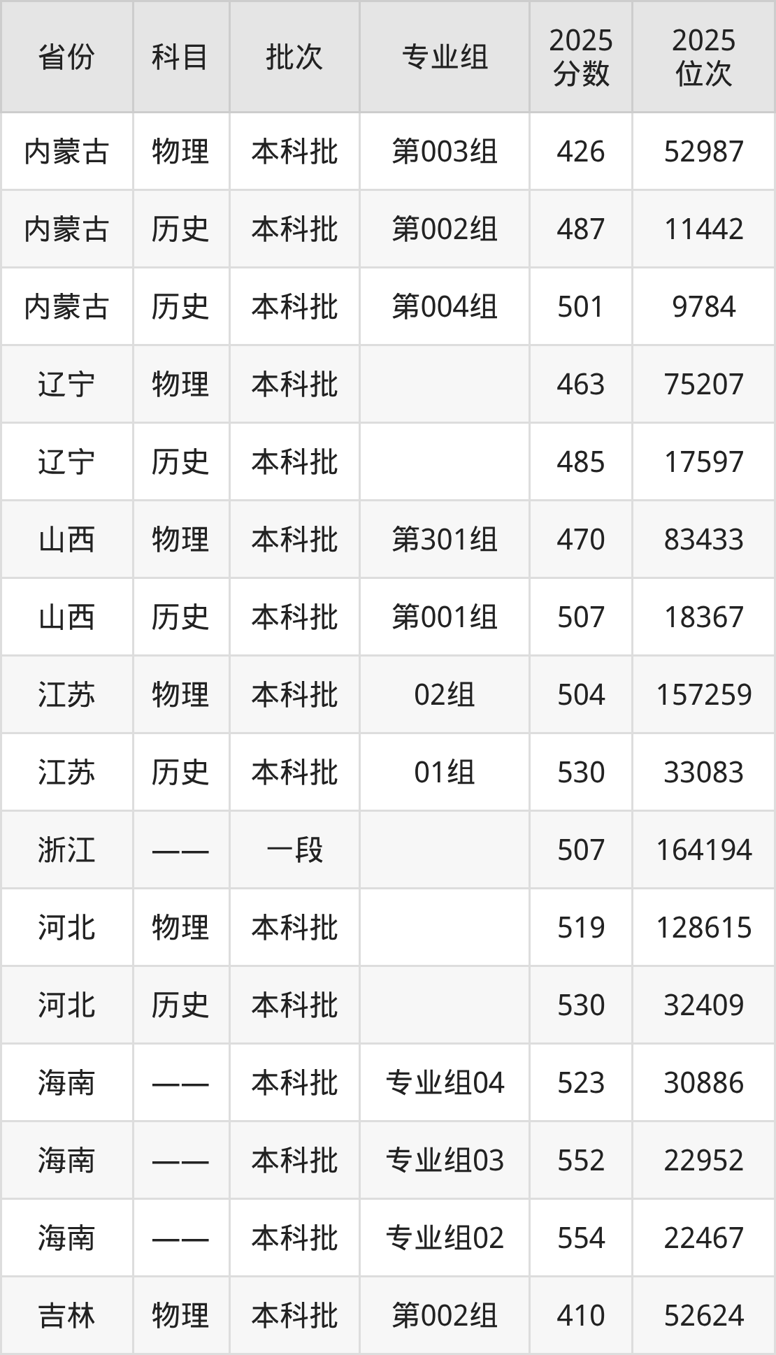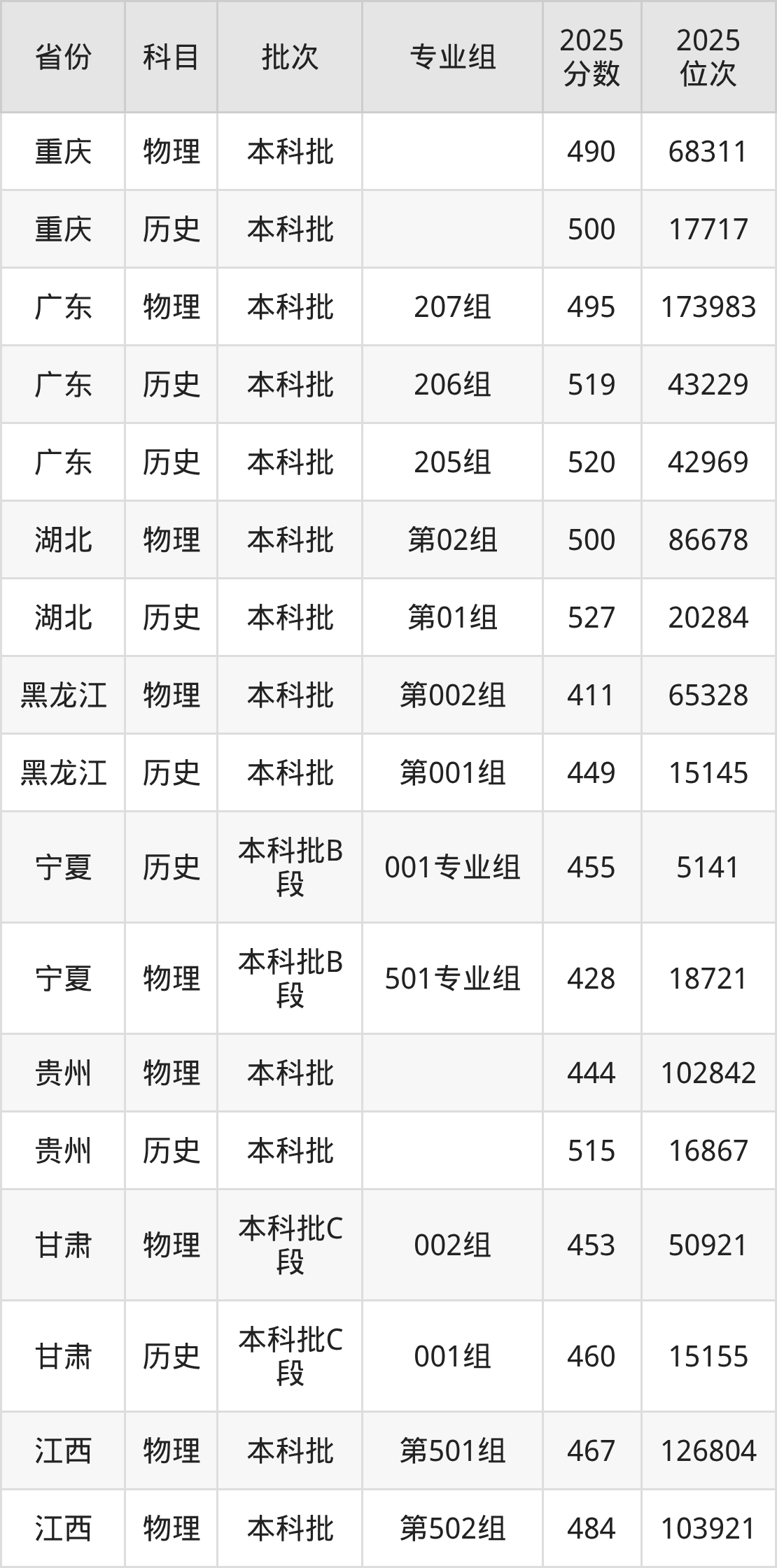 2025年投档录取最低分为463分,录取最低位次为75207名。