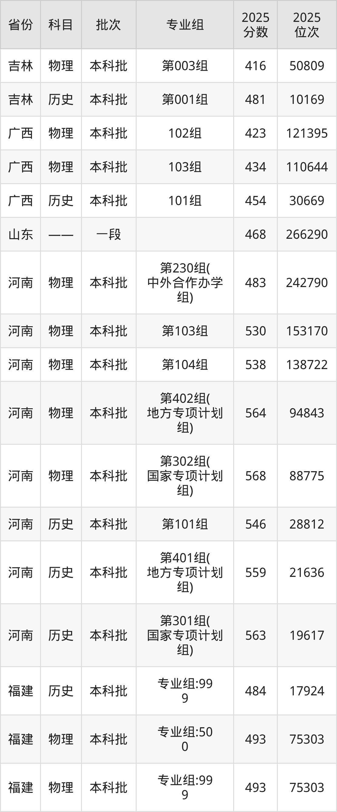 河南科技学院001专业组:2025年投档录取最低分为460分,录取最低位次为15155名。