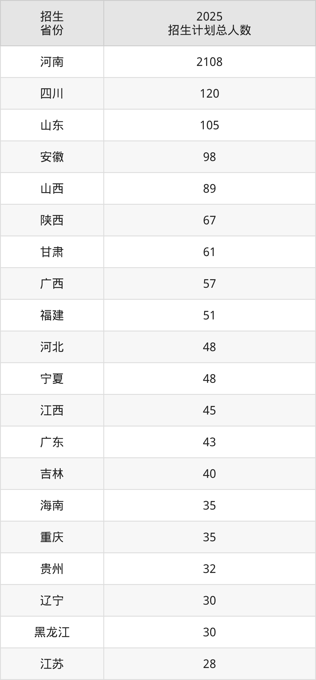 2025年河南科技学院面向全国27个省市开展本科招生;招生专业共49个,招生人数共3307人。