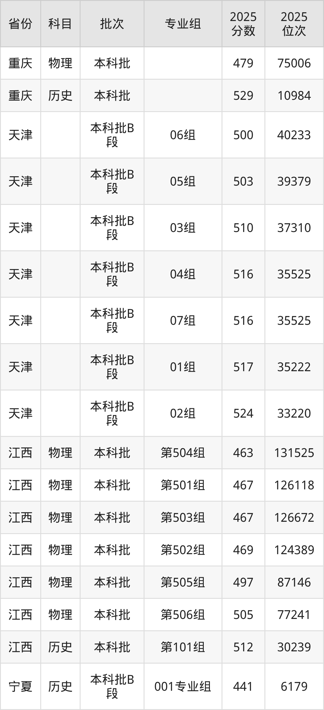 天津医科大学临床医学院第504组:2025年投档录取最低分为463分,录取最低位次为131525名。