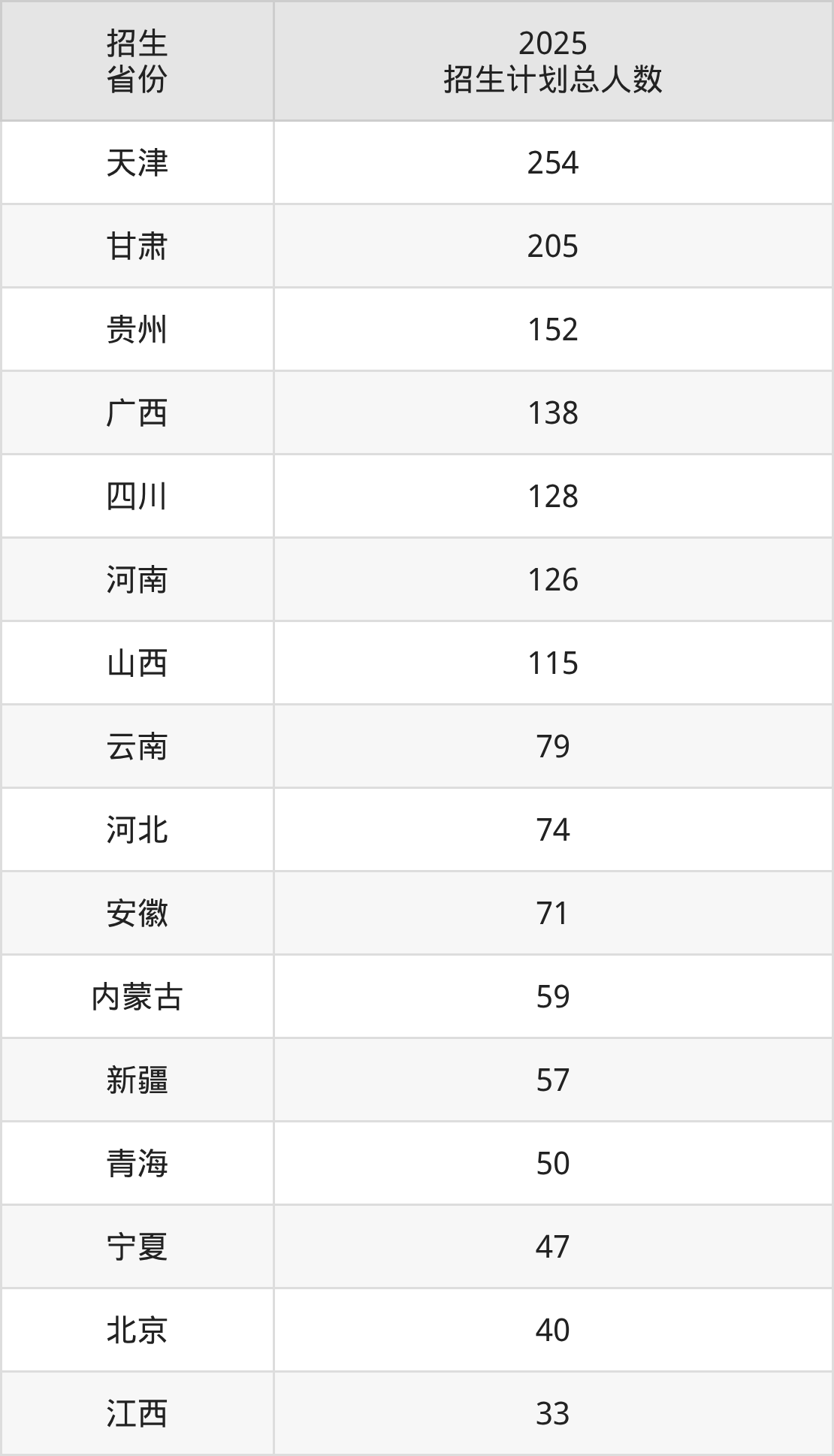 2025年天津医科大学临床医学院面向全国27个省市开展本科招生;招生专业共12个,招生人数共1866人。2025年在天津市招生计划总人数是254人,其中,天津医科大学临床医学院在天津市招生人数最多的是护理学。天津医科大学临床医学院在各省具体招生人数情况如下表。