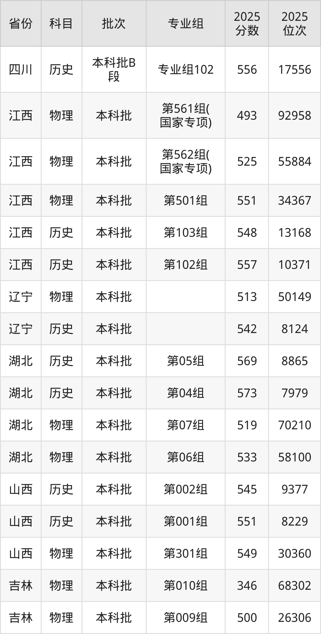 2025年投档录取最低分为519分,录取最低位次为50211名。
