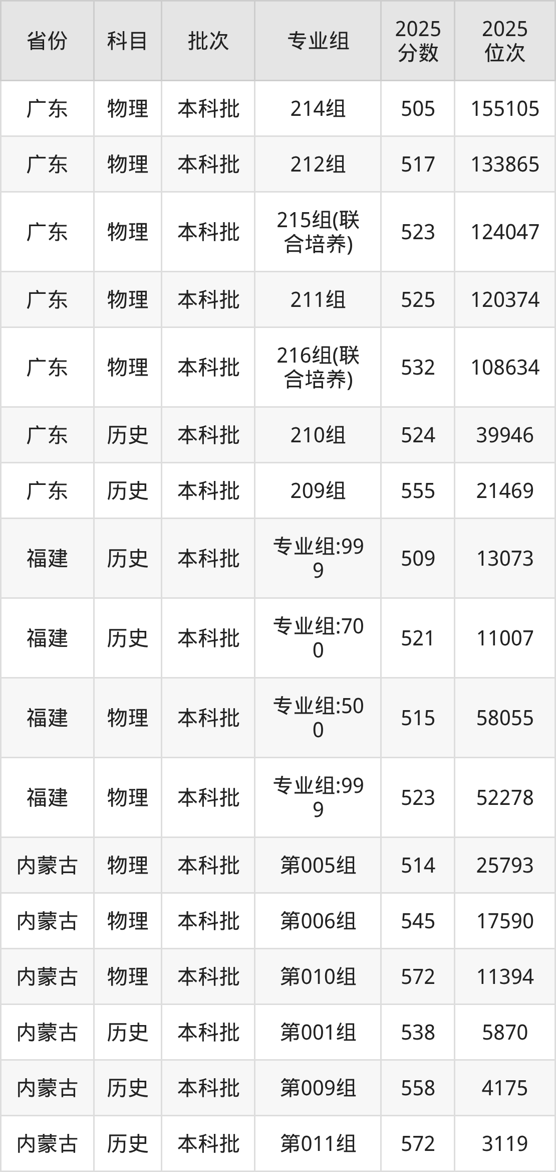 化学(前1名考生入选学校拔尖人才培养计划):2025年投档录取最低分为571分。