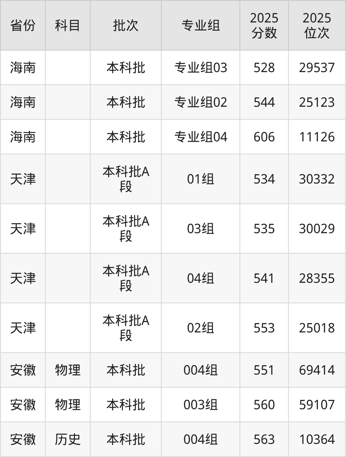 2025年投档录取最低分为531分,录取最低位次为10541名。