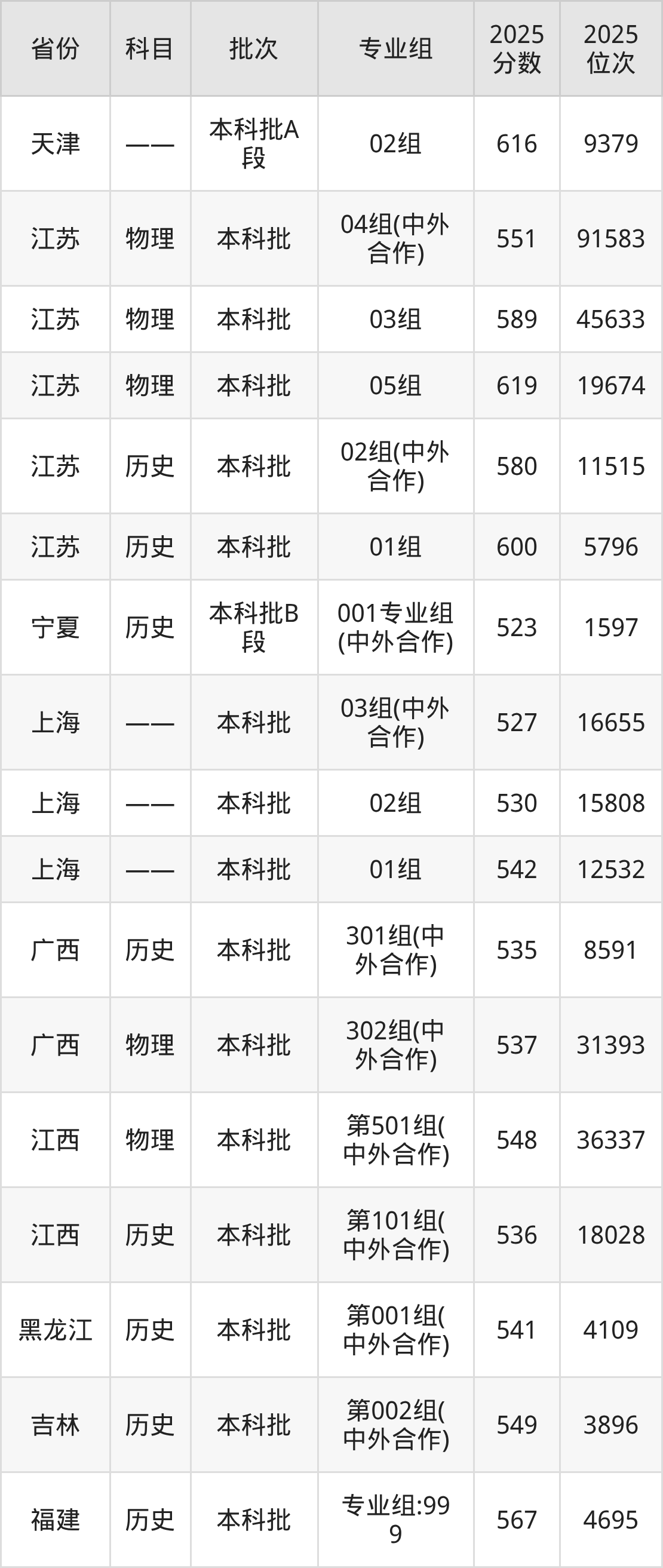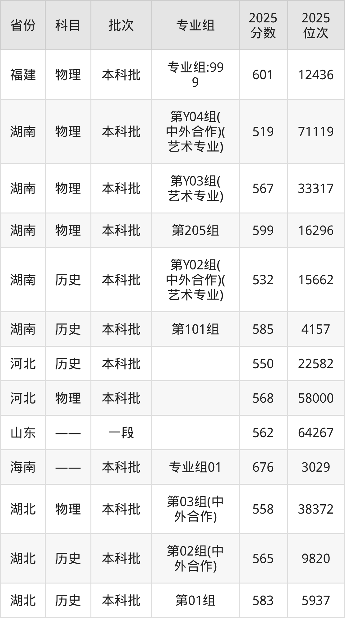 艺术史论(中外合作办学):2025年投档录取最低分为592分。