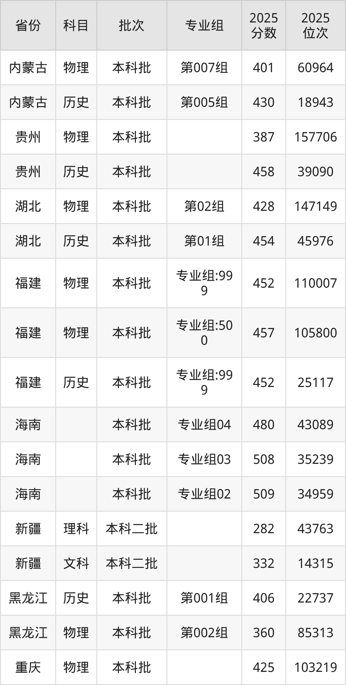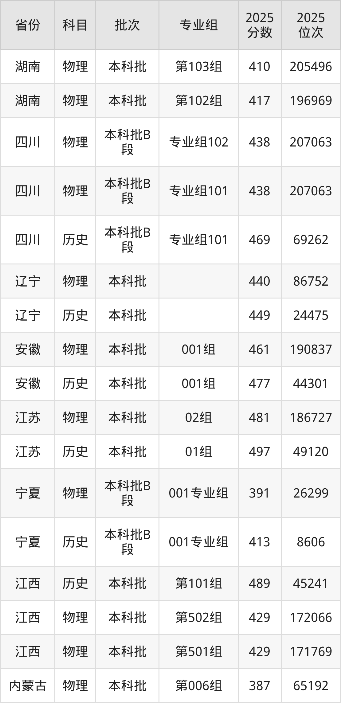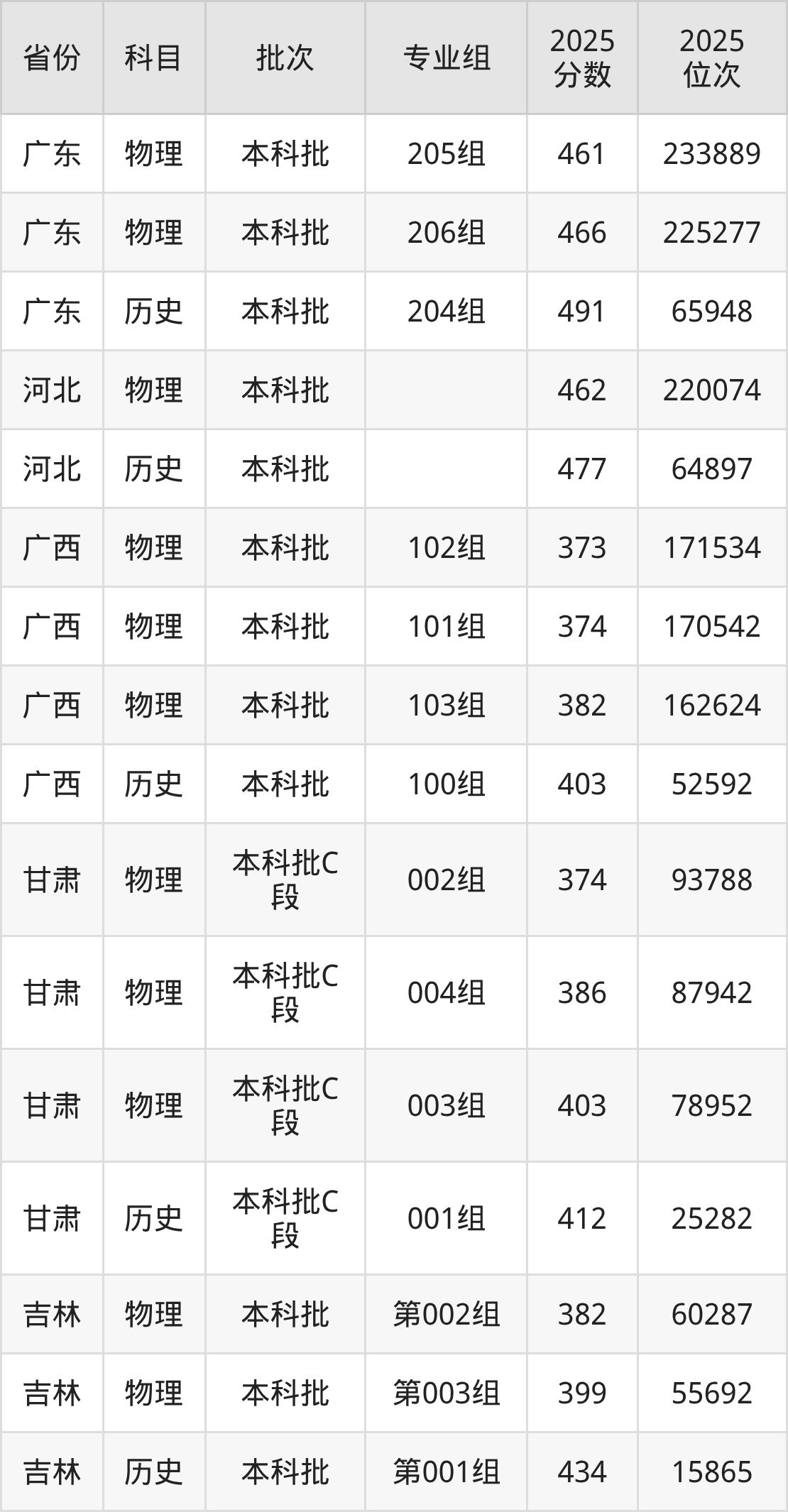 普通类本科物理类最低387分,本科历史类最低458分