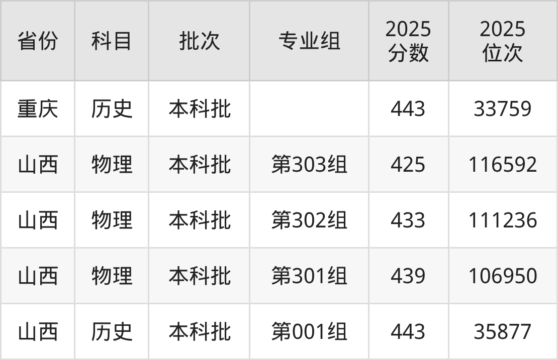 2025年投档录取最低分为387分,录取最低位次为157706名。