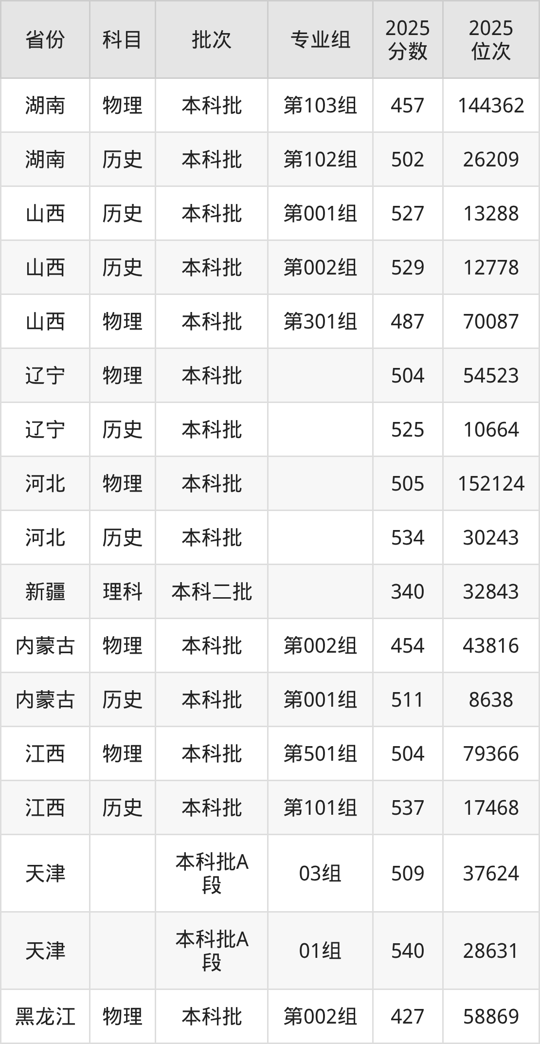 2025年投档录取最低分为509分,录取最低位次为15556名。