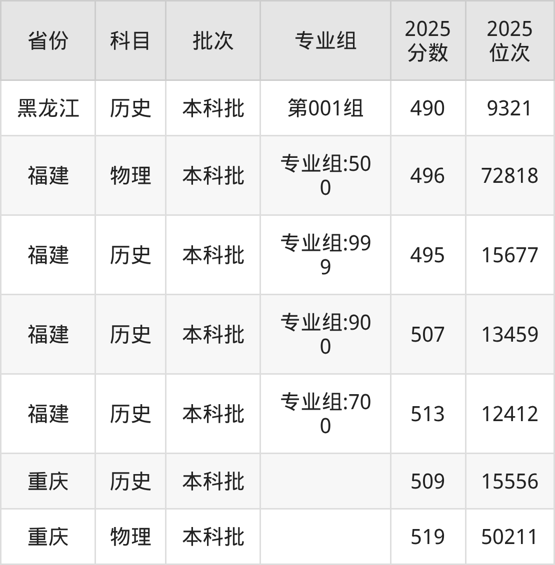 2025年投档录取最低分为519分,录取最低位次为50211名。