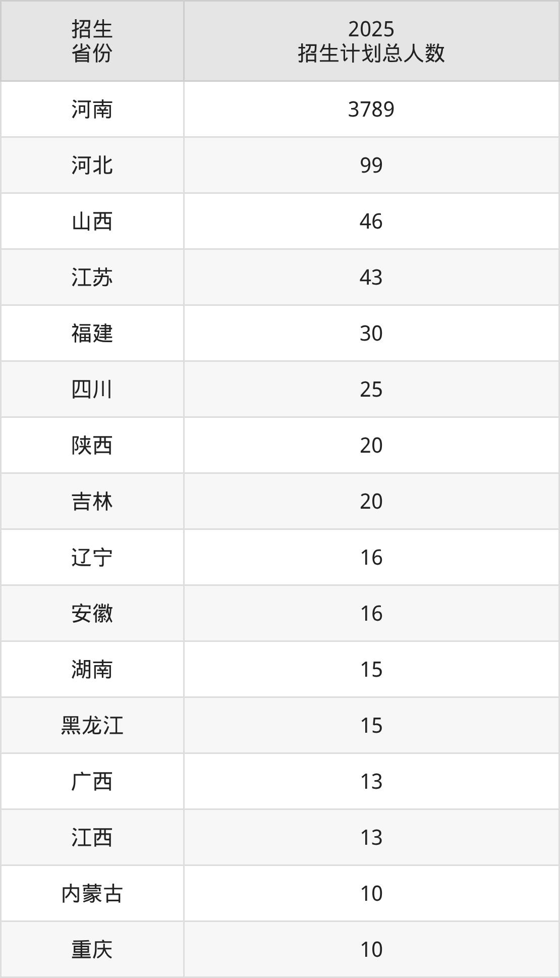 2025年安阳师范学院面向全国19个省市开展本科招生;招生专业共46个,招生人数共4203人。2025年在河南省招生计划总人数是3789人,其中,安阳师范学院在河南省招生人数最多的是历史学。安阳师范学院在各省具体招生人数情况如下表。