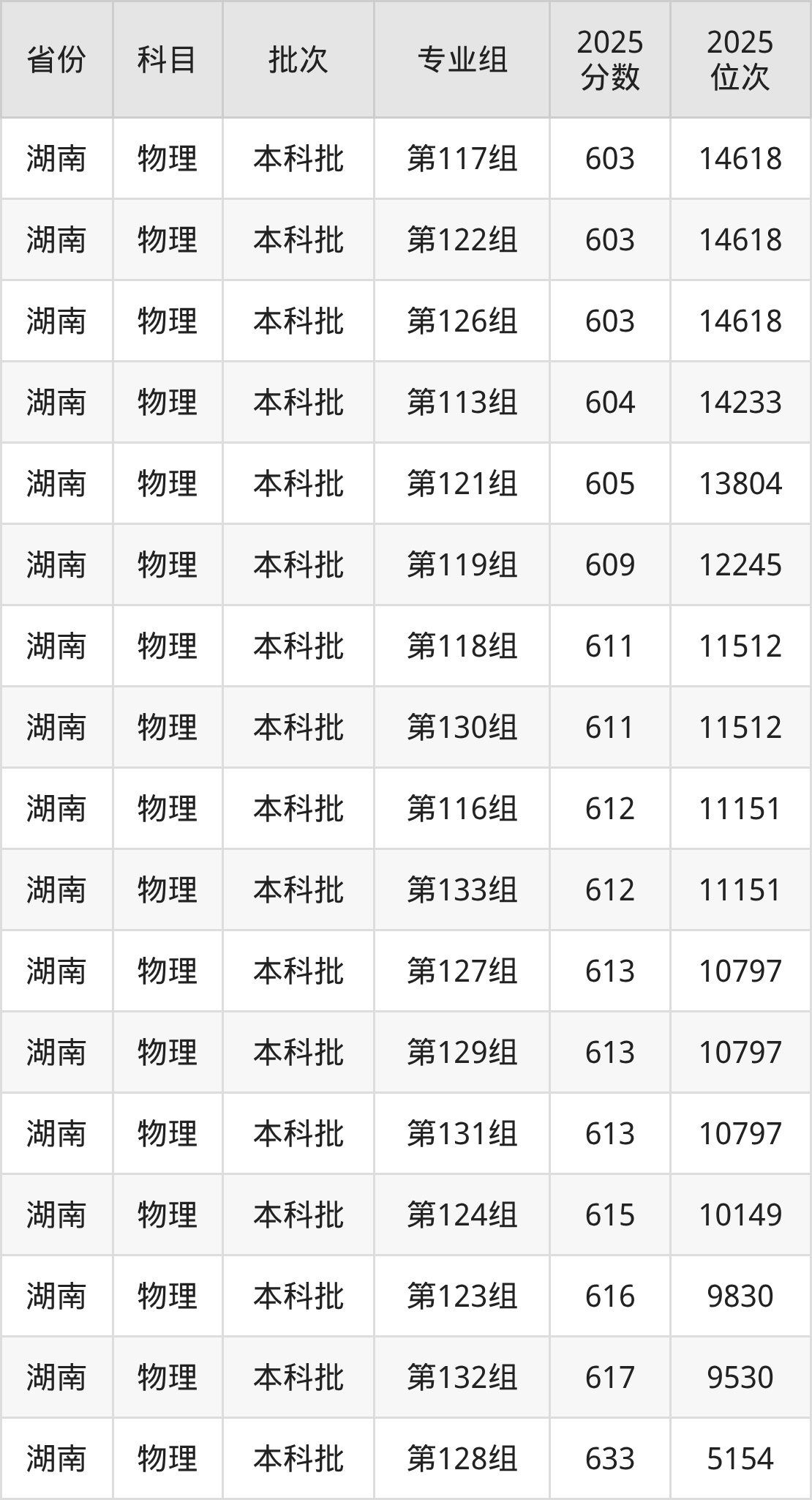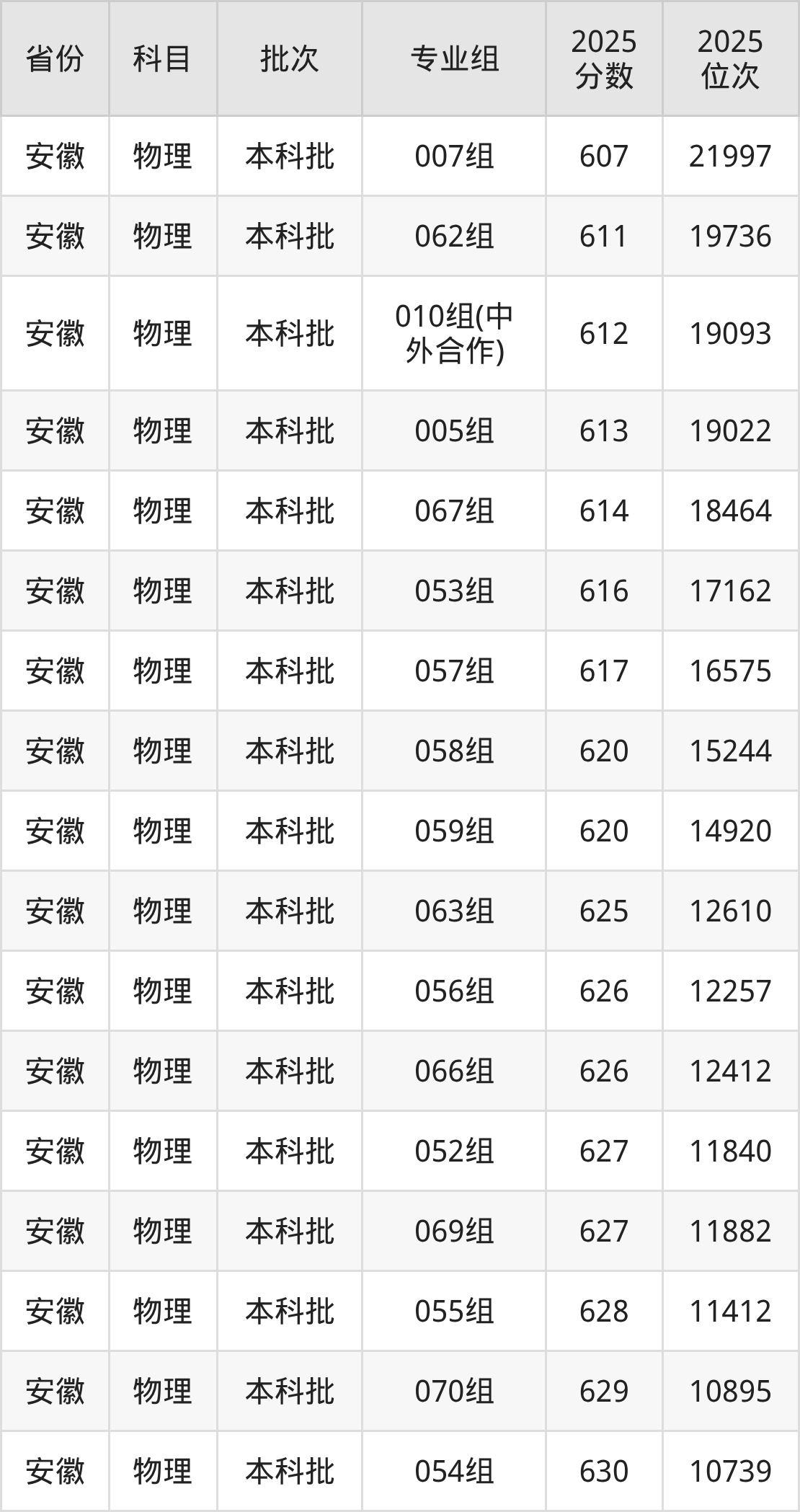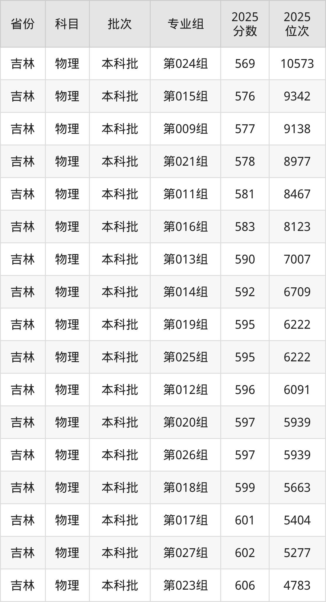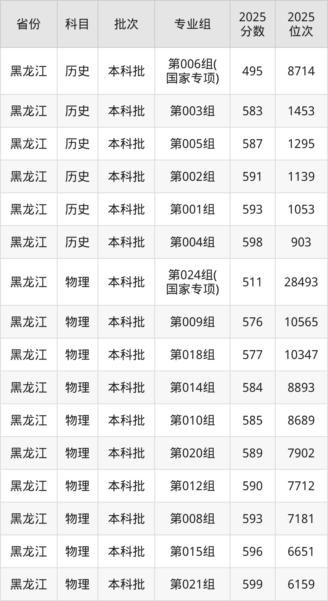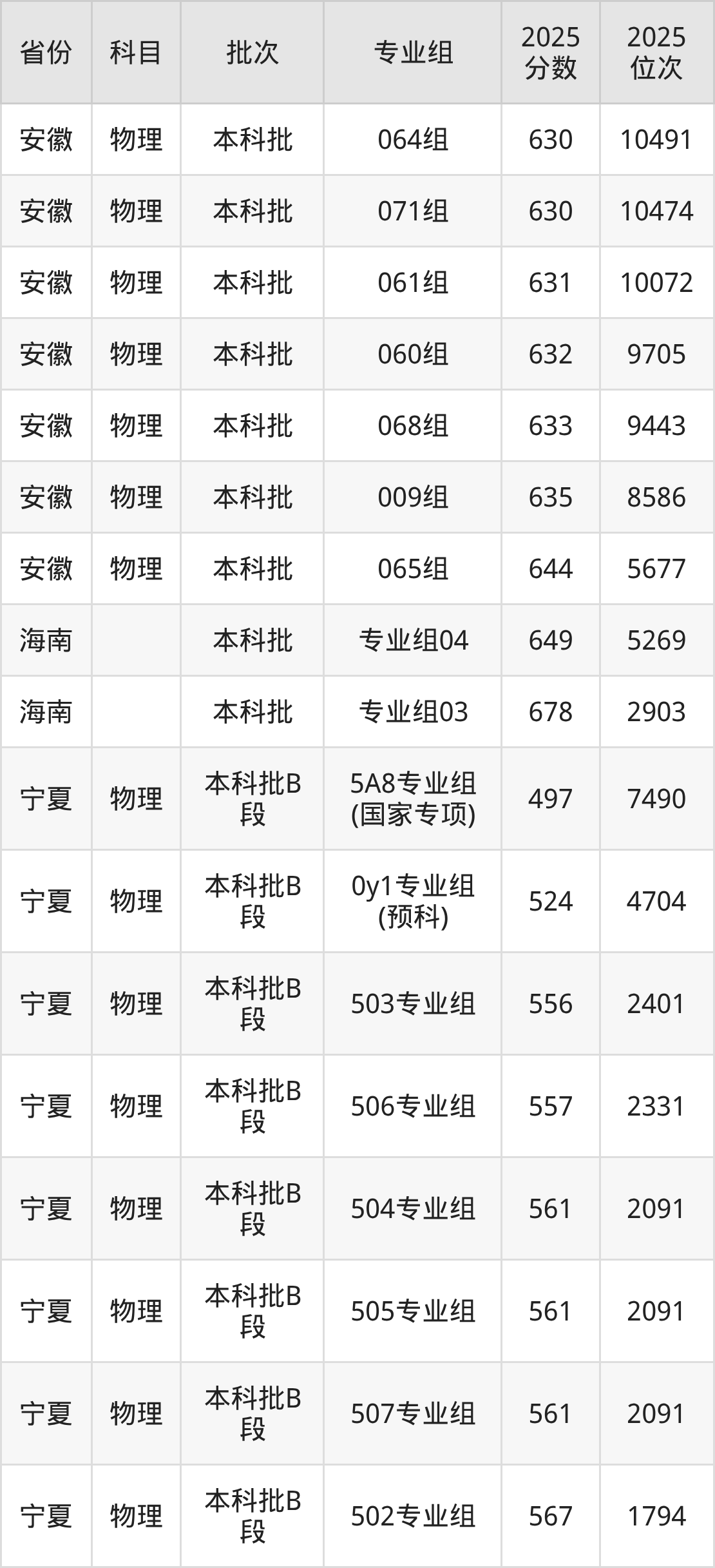 2025年在本科物理类进行招生,各专业组分数线详情如下: