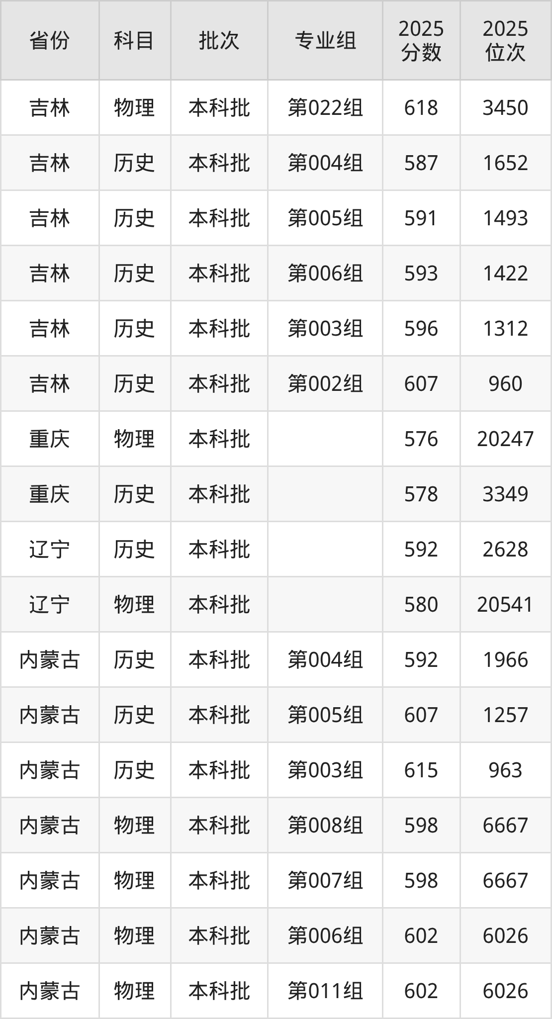 普通类本科历史类最低592分,本科物理类最低598分