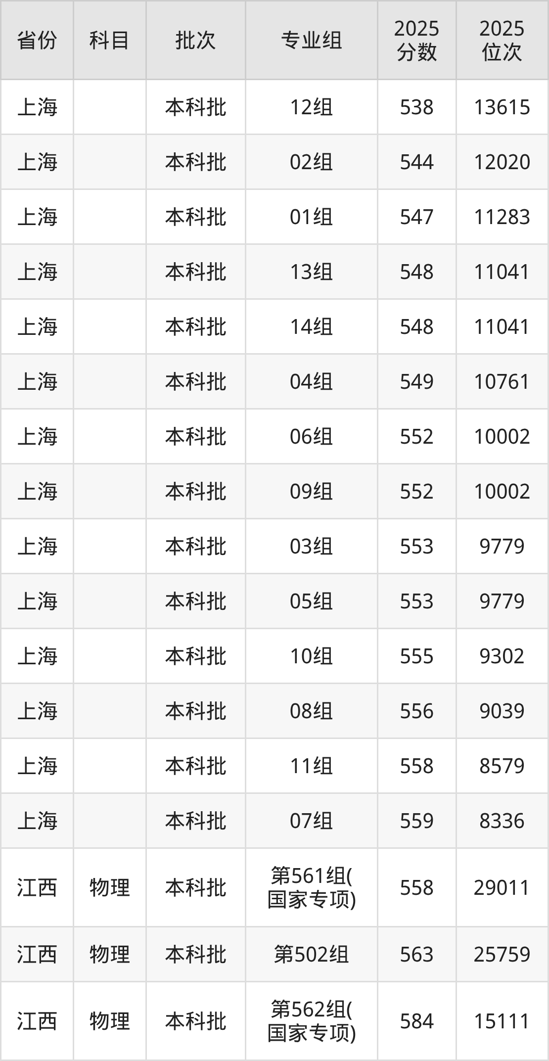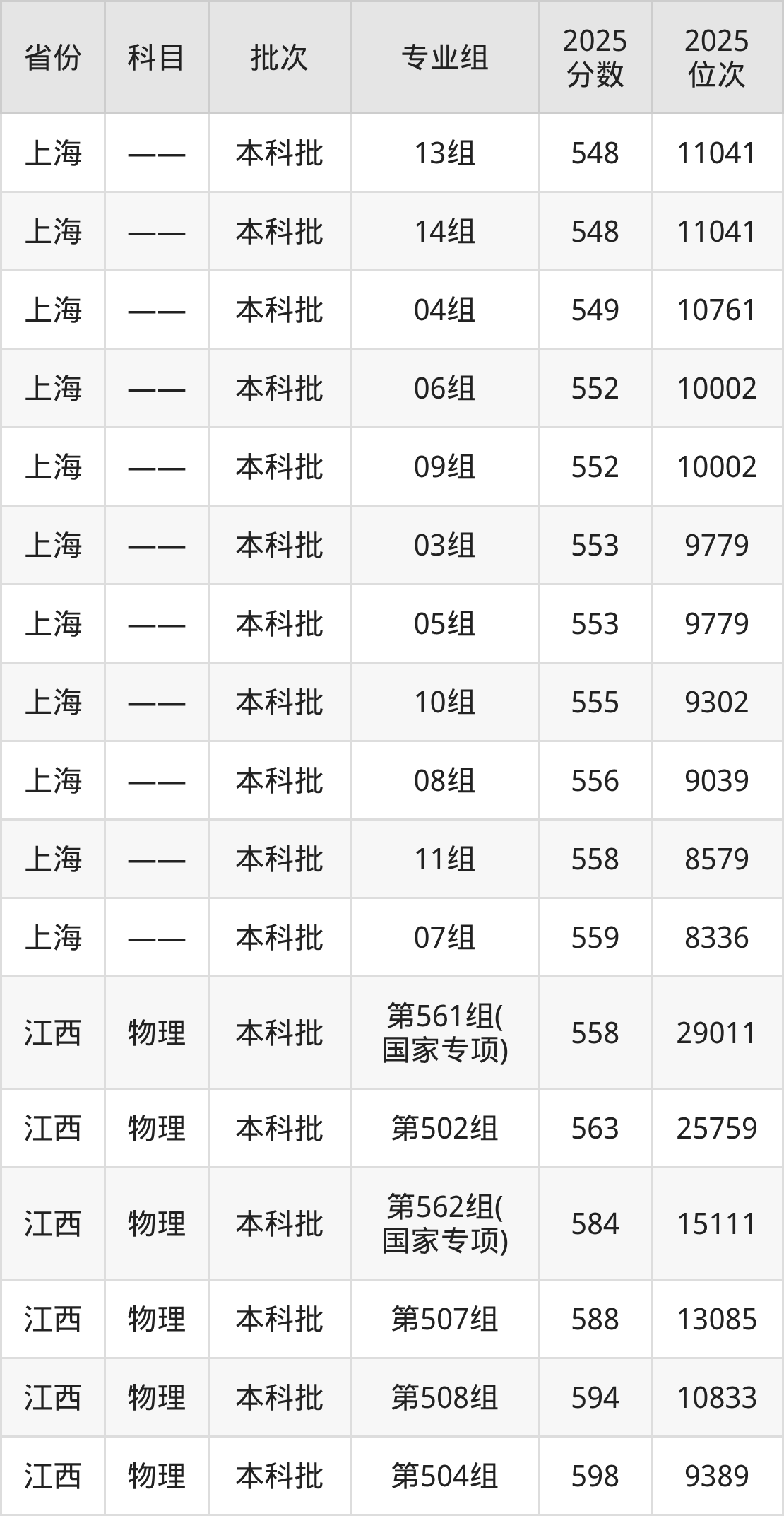 江南大学第561组(国家专项):2025年投档录取最低分为558分,录取最低位次为29011名。