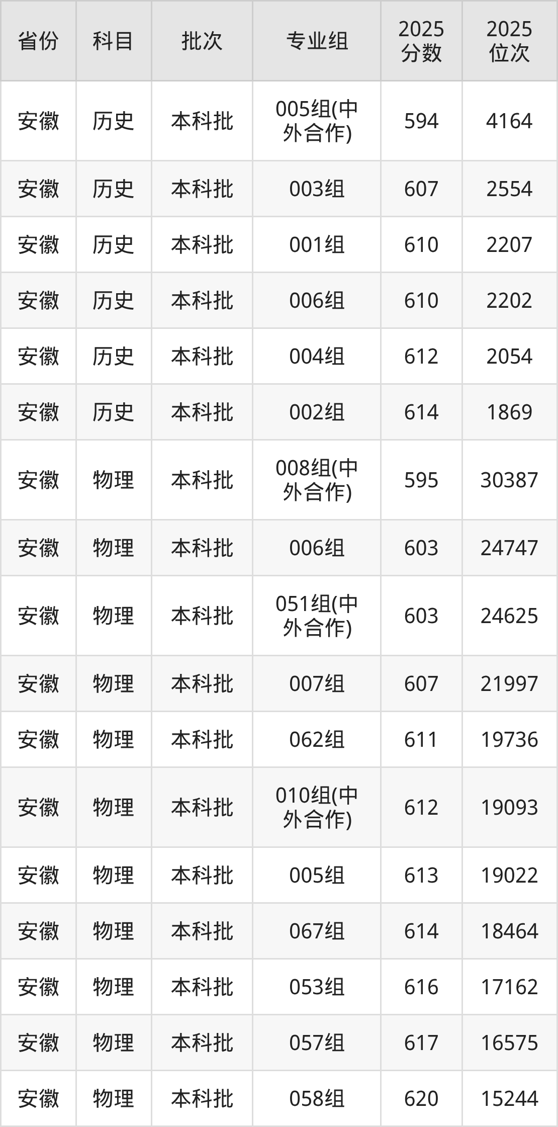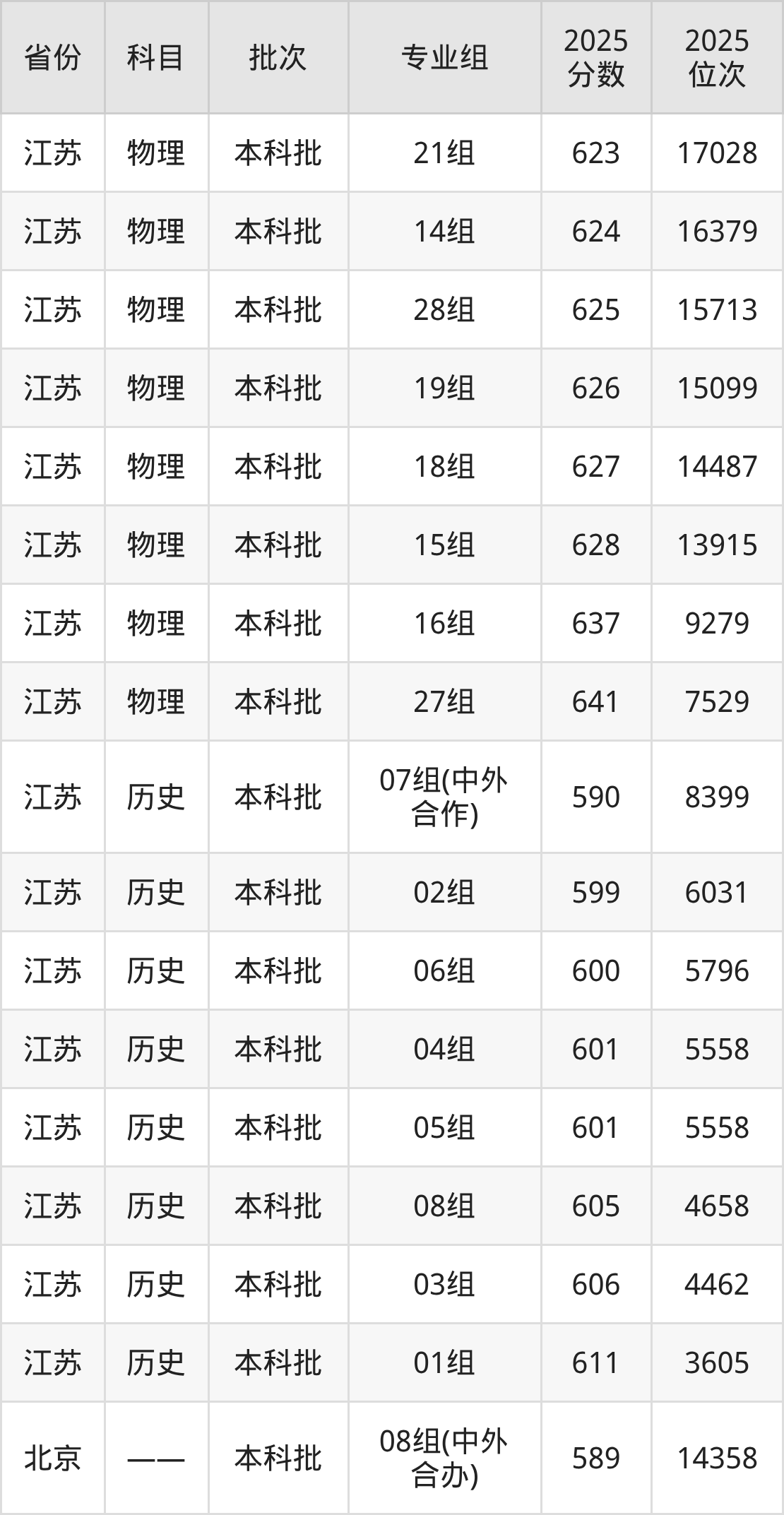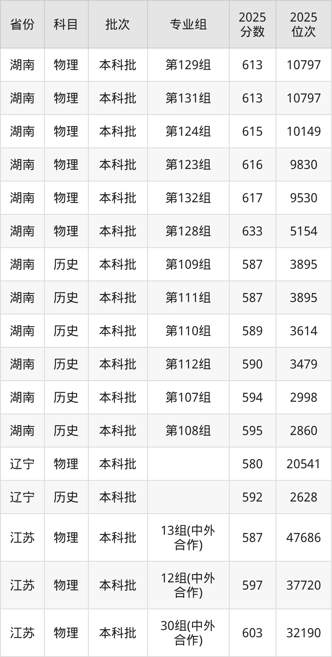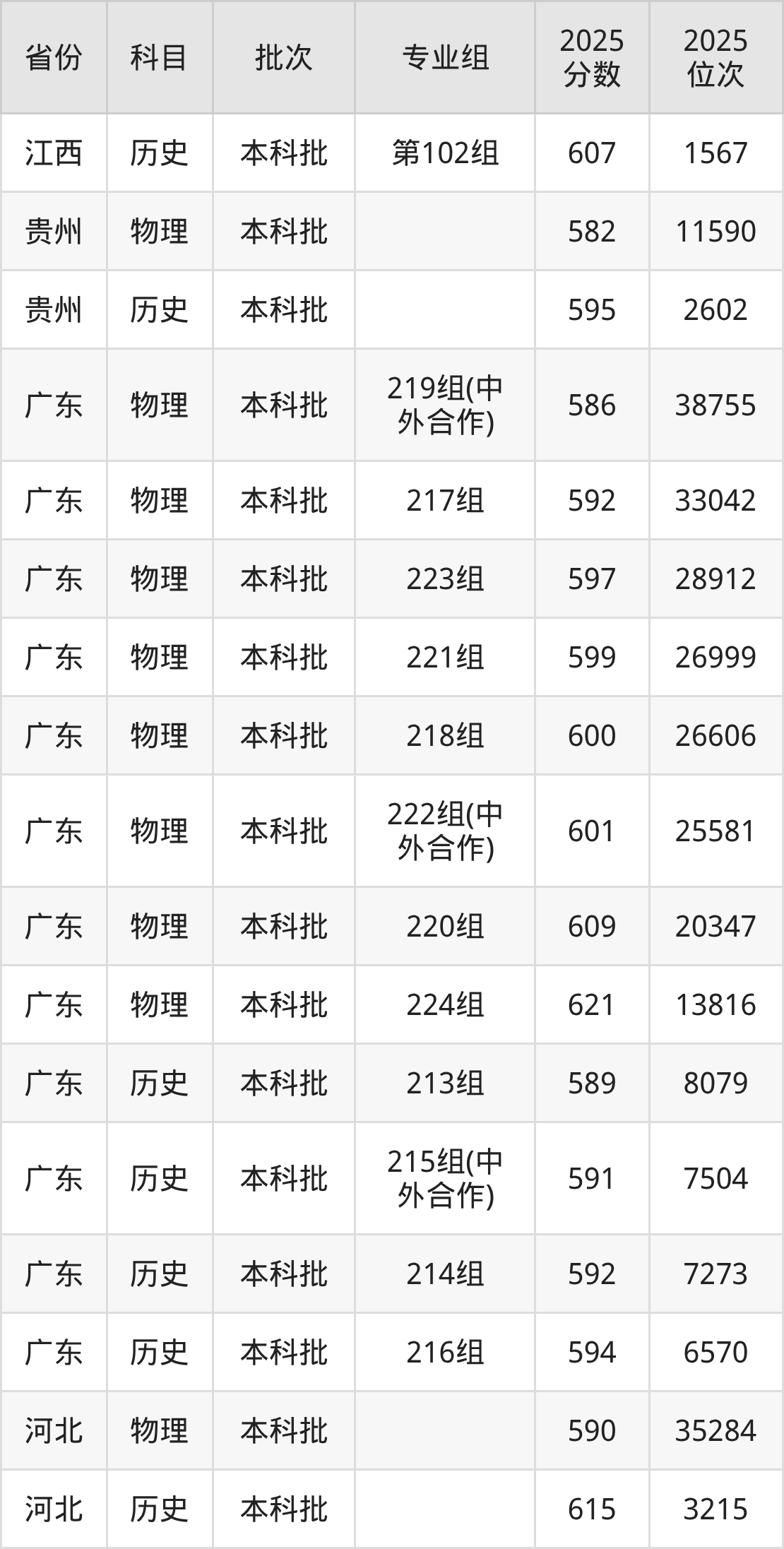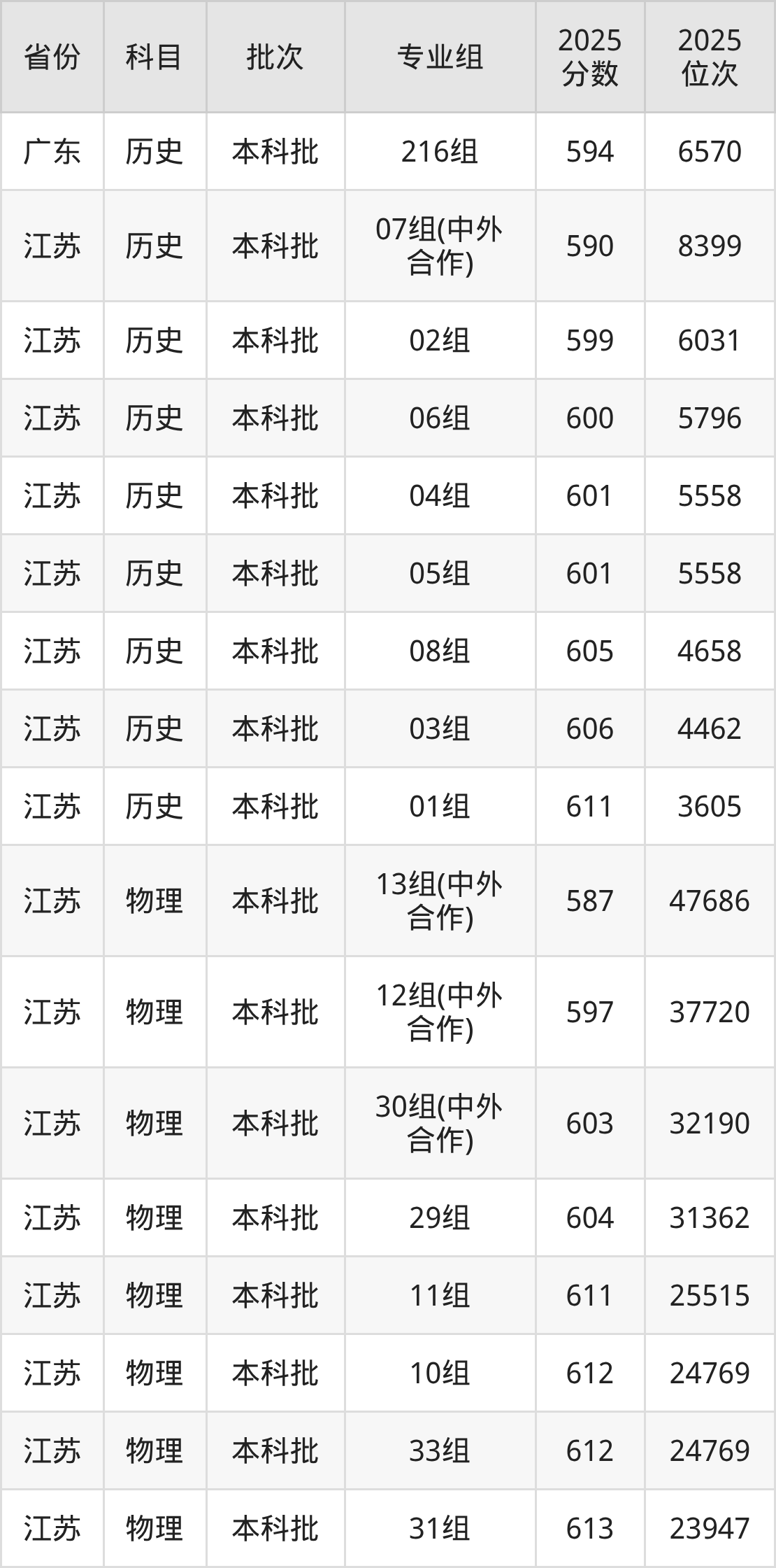 江南大学010组(中外合作办学):2025年投档录取最低分为612分,录取最低位次为19093名。