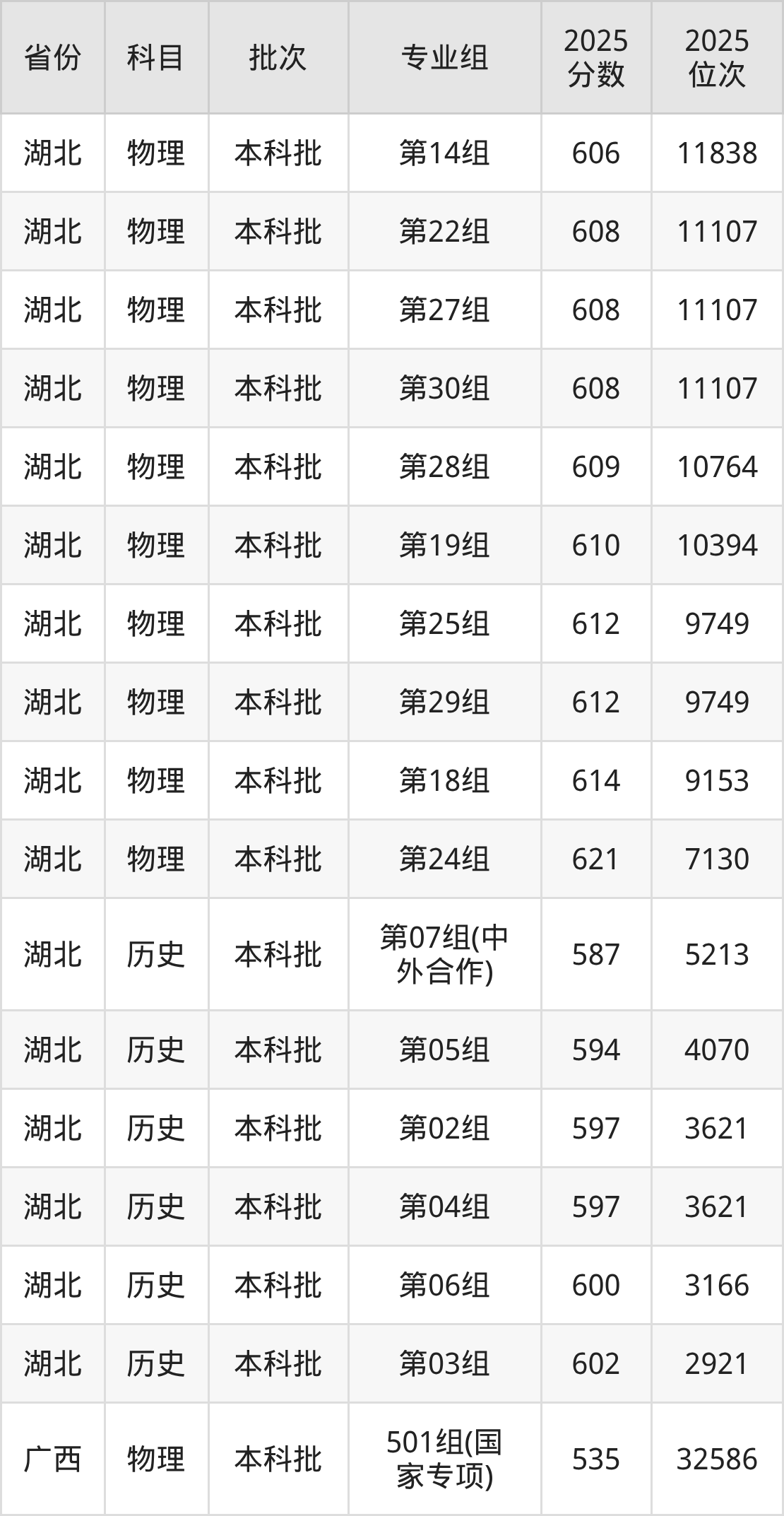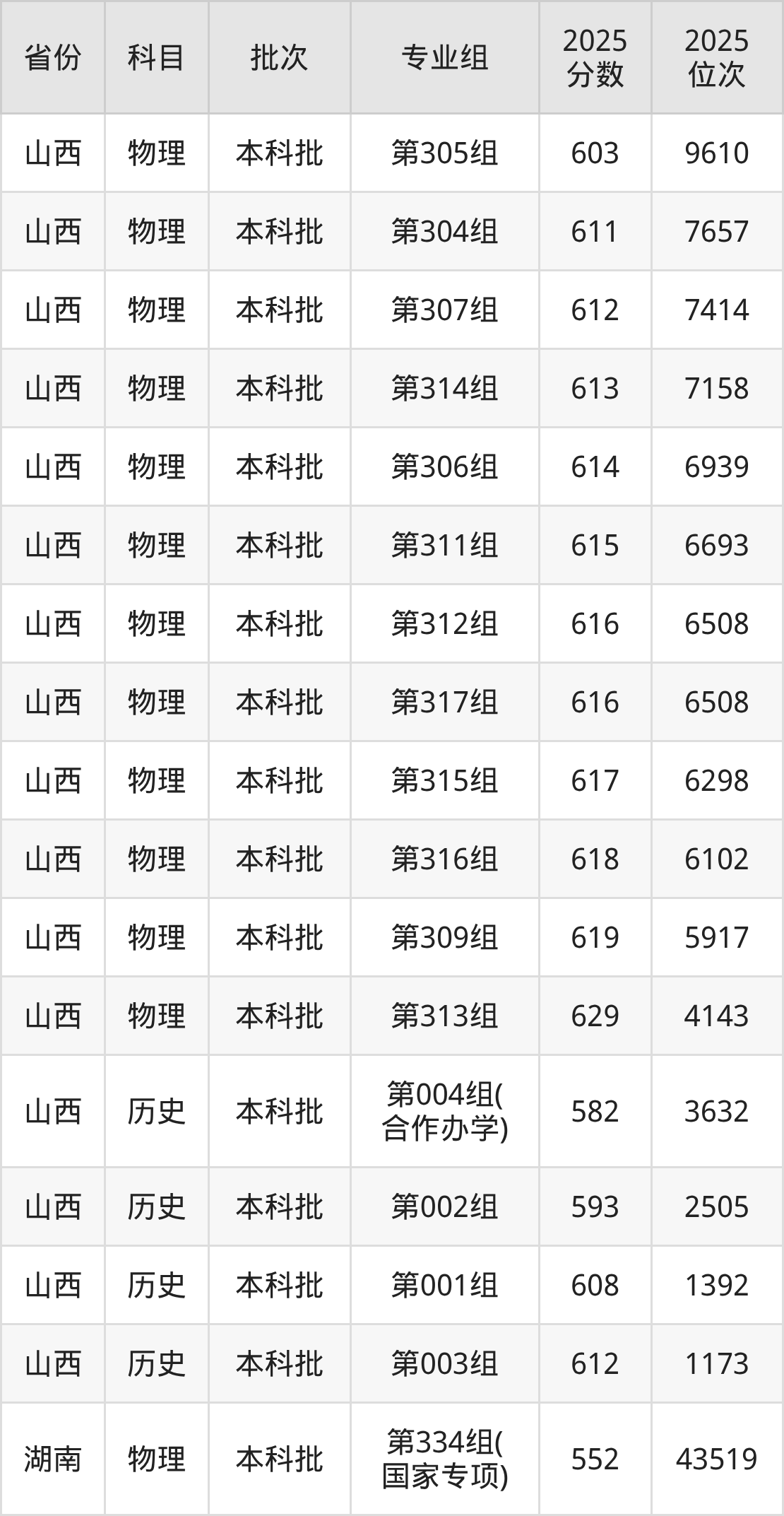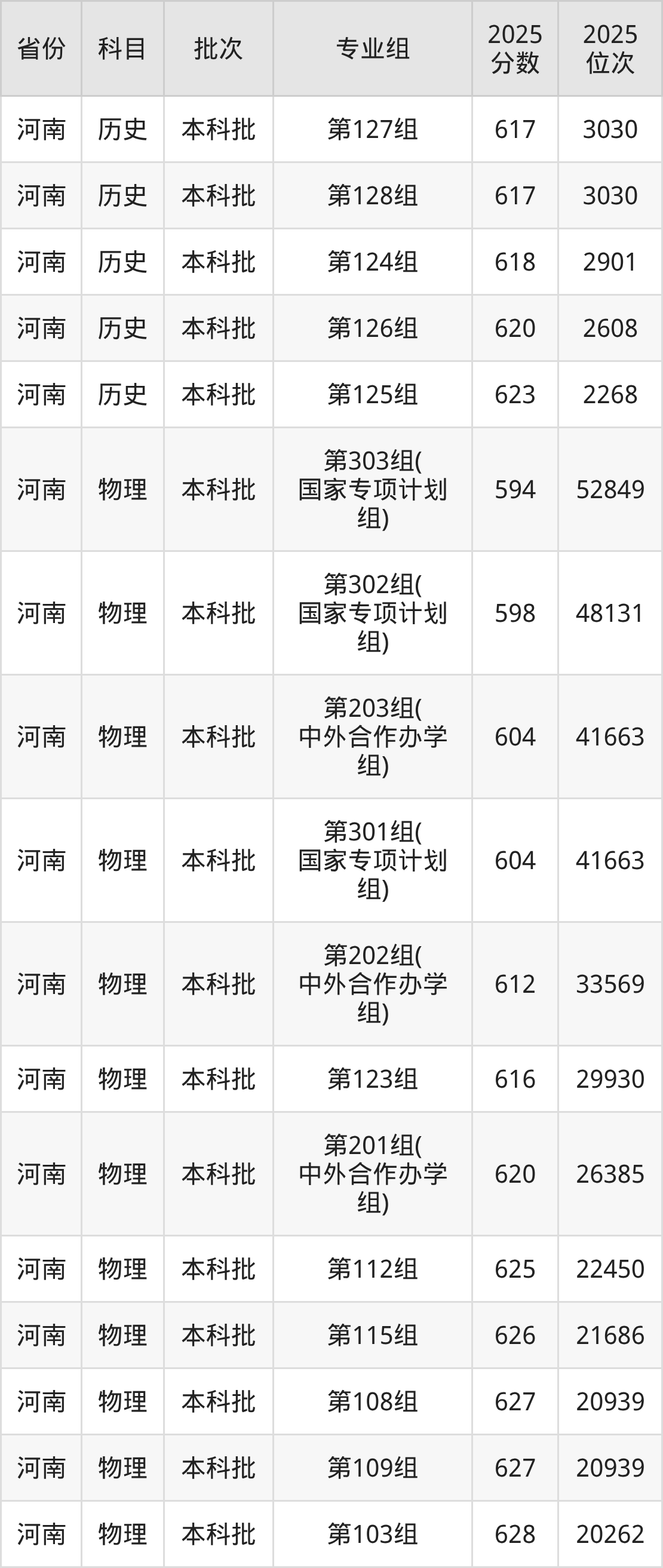 普通类本科物理类最低582分,本科历史类最低595分