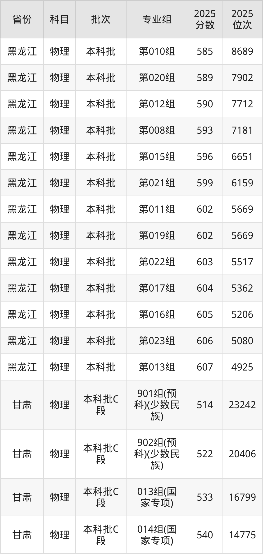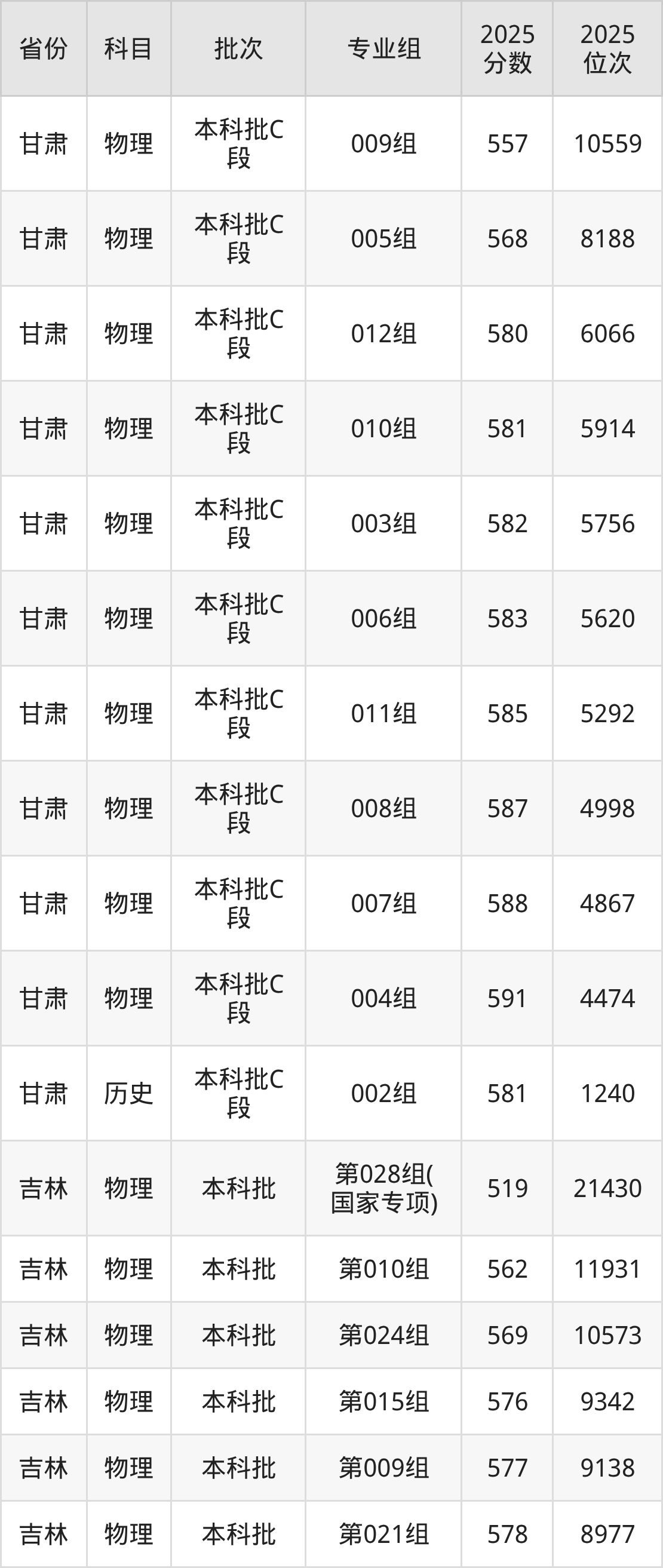 普通类本科物理类最低586分,本科历史类最低589分
