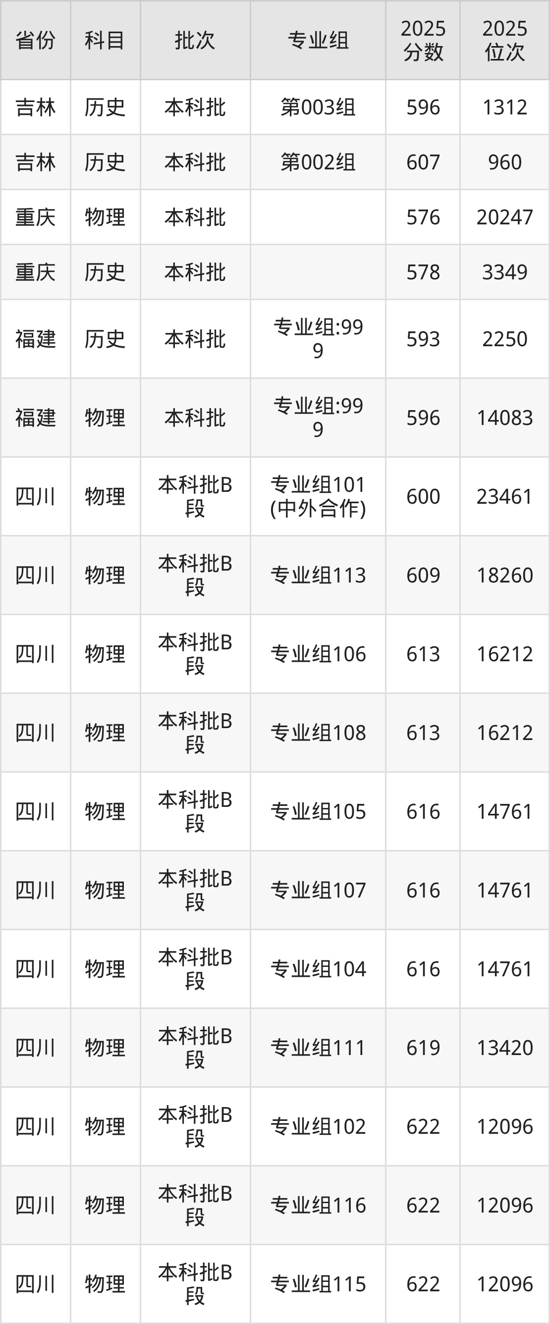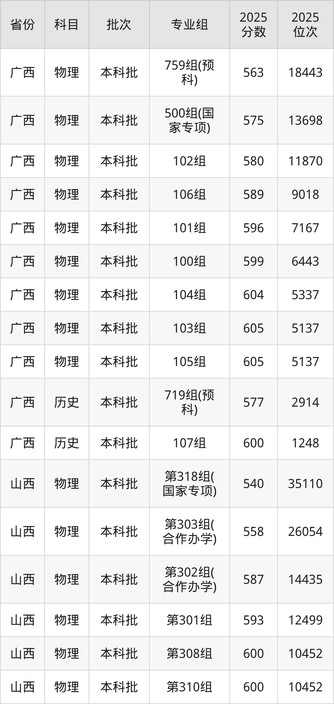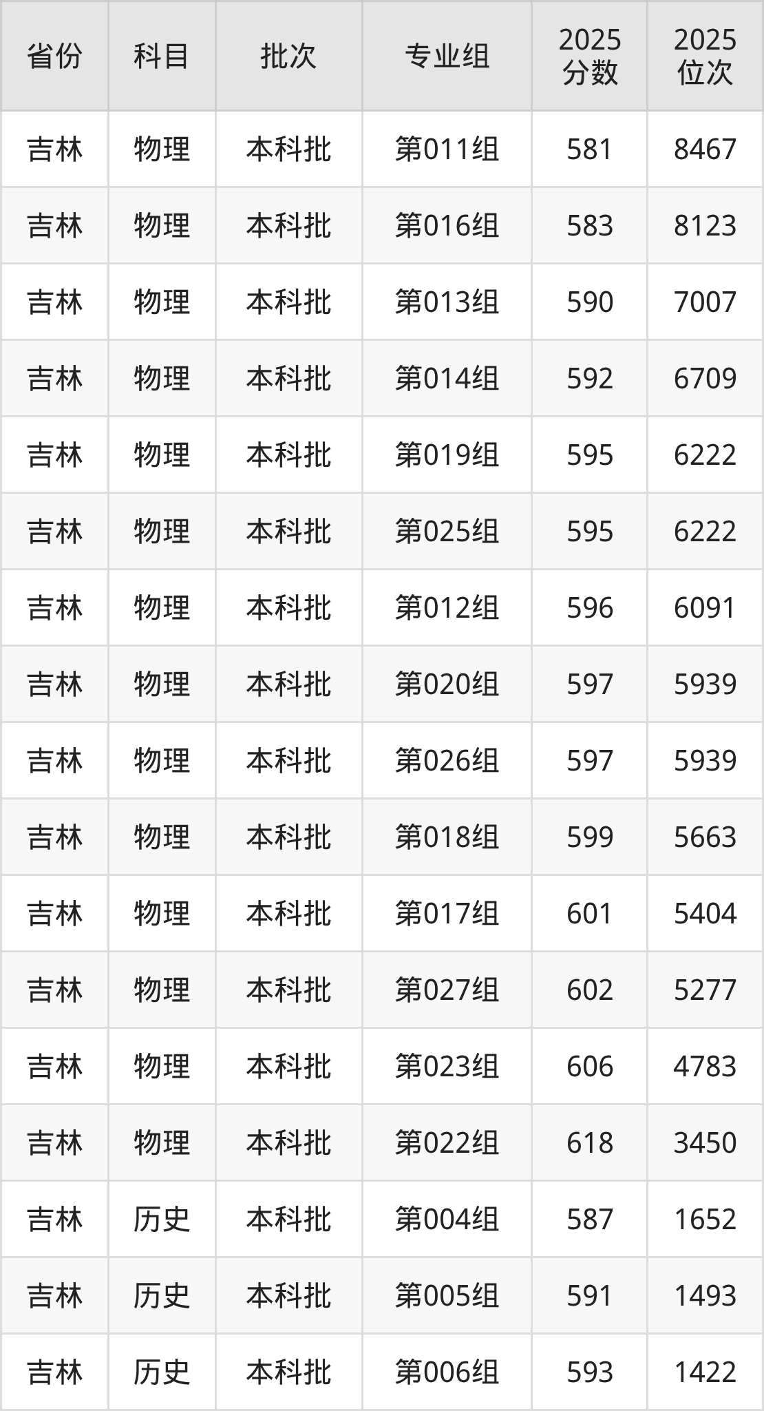 普通类本科历史类最低593分,本科物理类最低596分