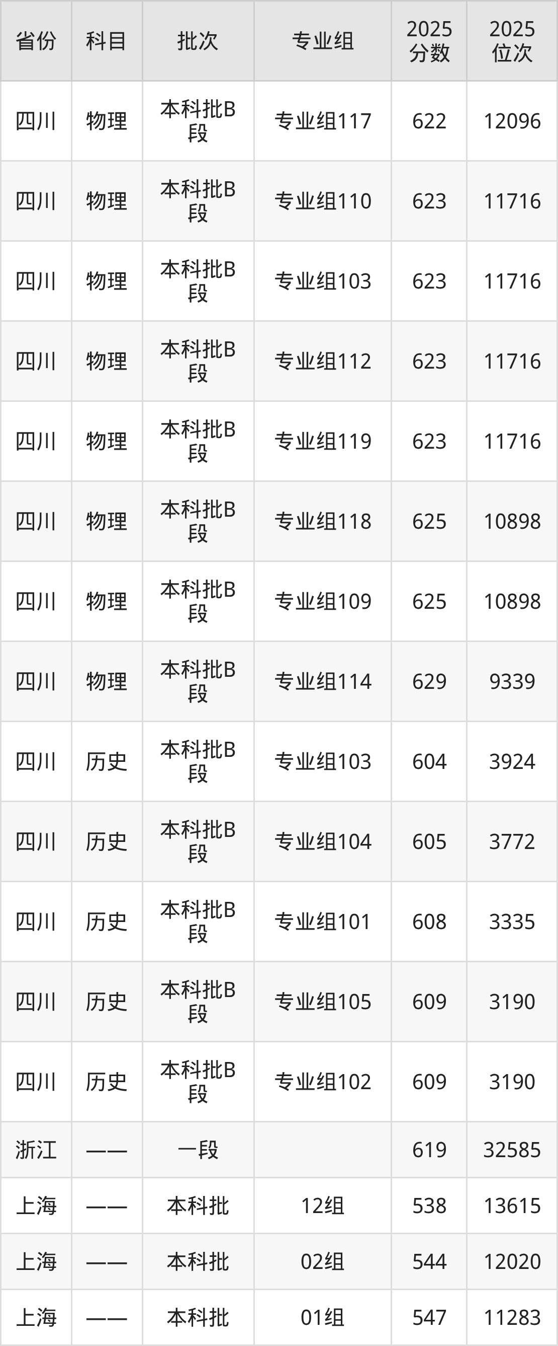 江南大学专业组116:2025年投档录取最低分为622分,录取最低位次为12096名。