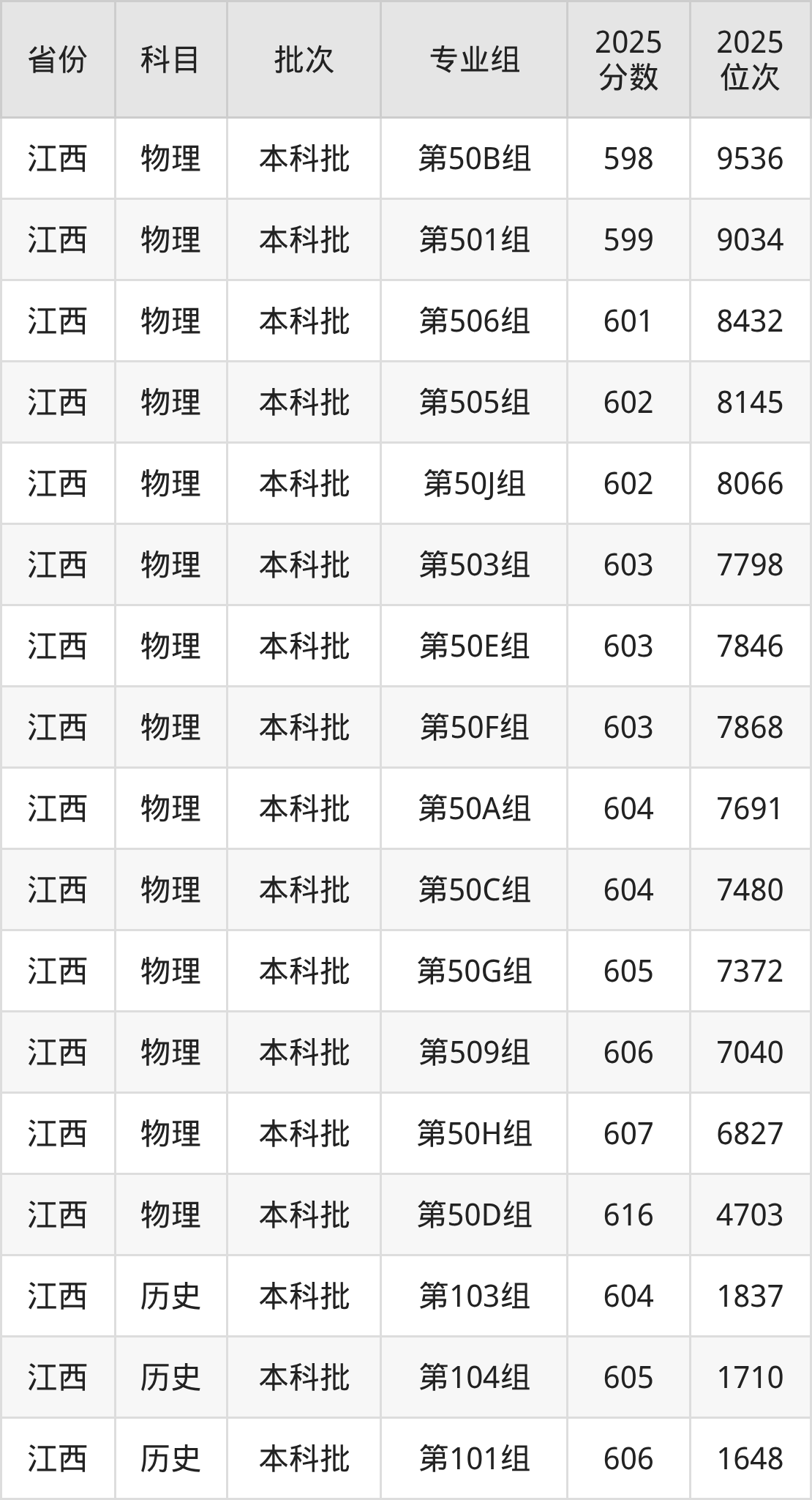 江南大学第50B组:2025年投档录取最低分为598分,录取最低位次为9536名。