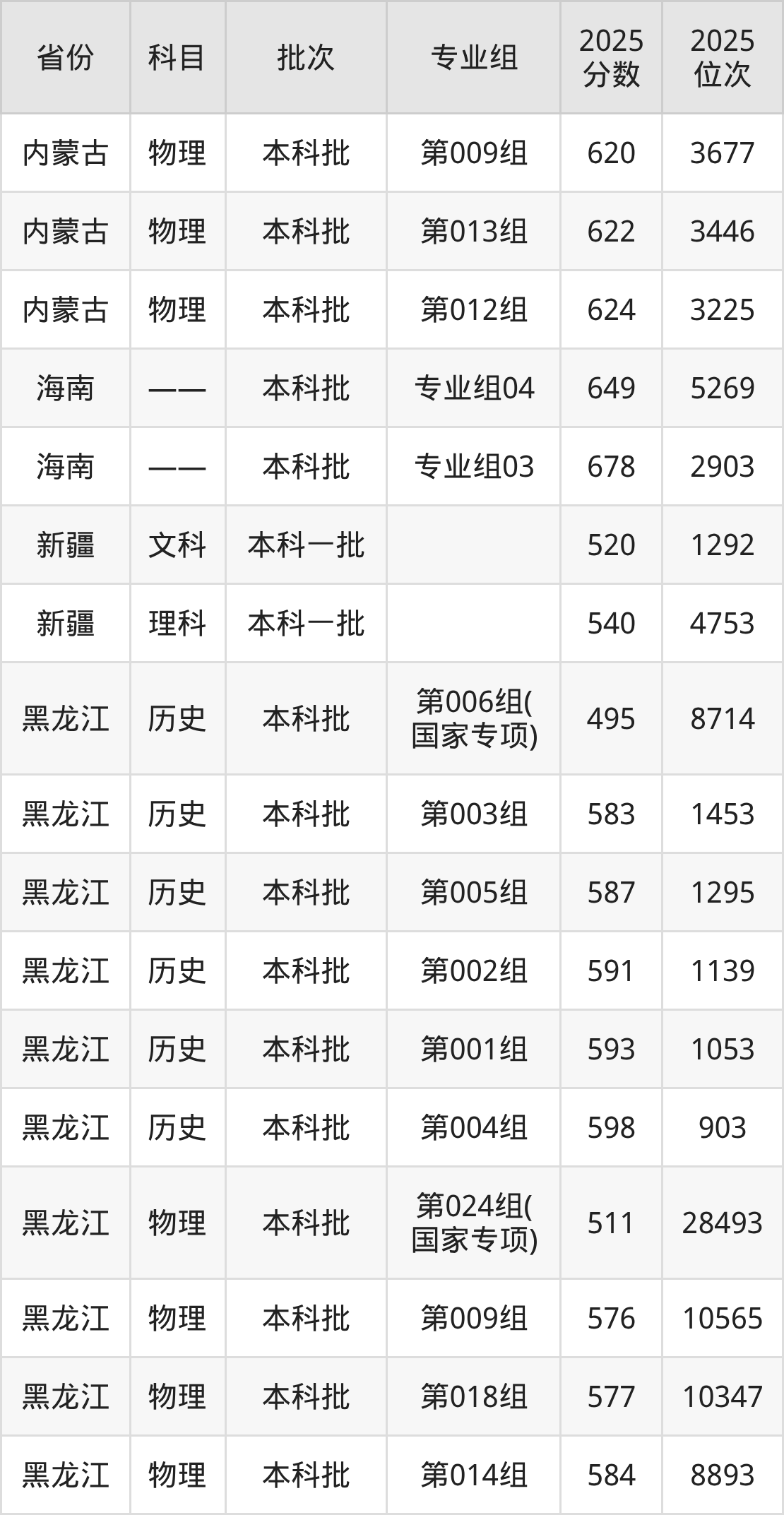 2025年江南大学全国录取分数线是495分到678分,录取最低在黑龙江历史类(第006组(国家专项))、录取最高在海南(专业组03)。各省各专业组最低分具有差异,详情如下:
