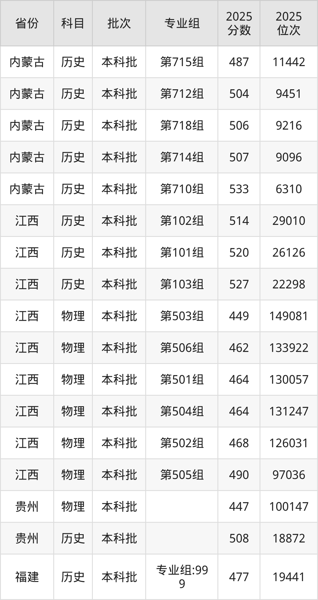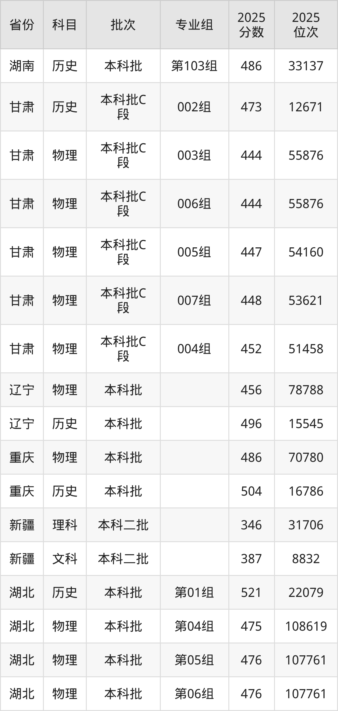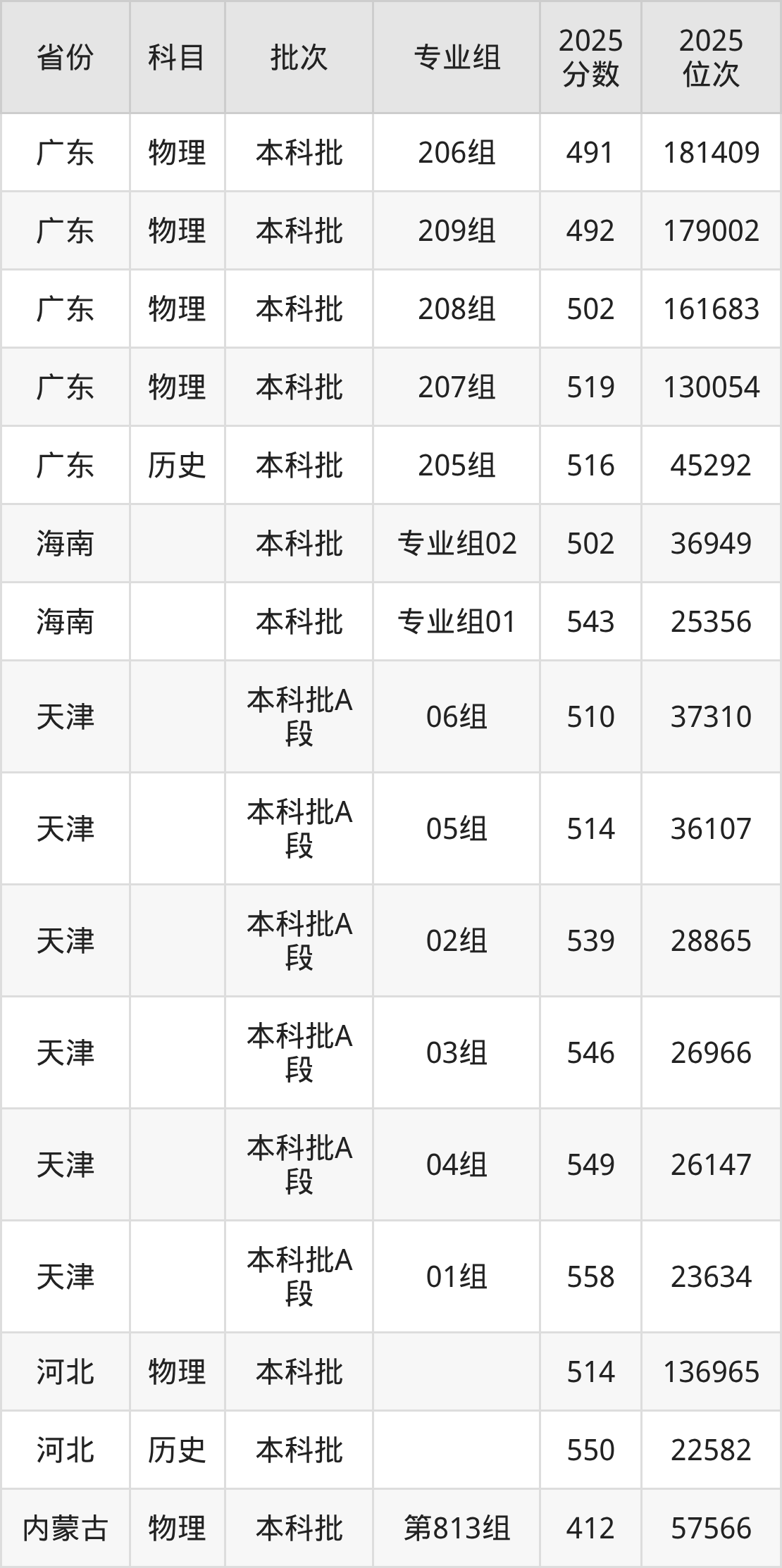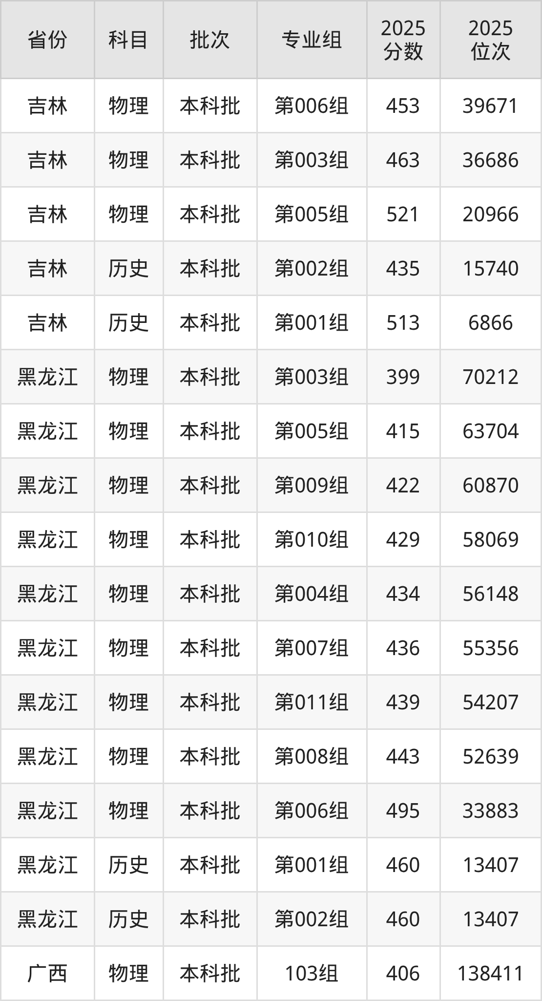 2025年在本科物理类进行招生,各专业组分数线详情如下: