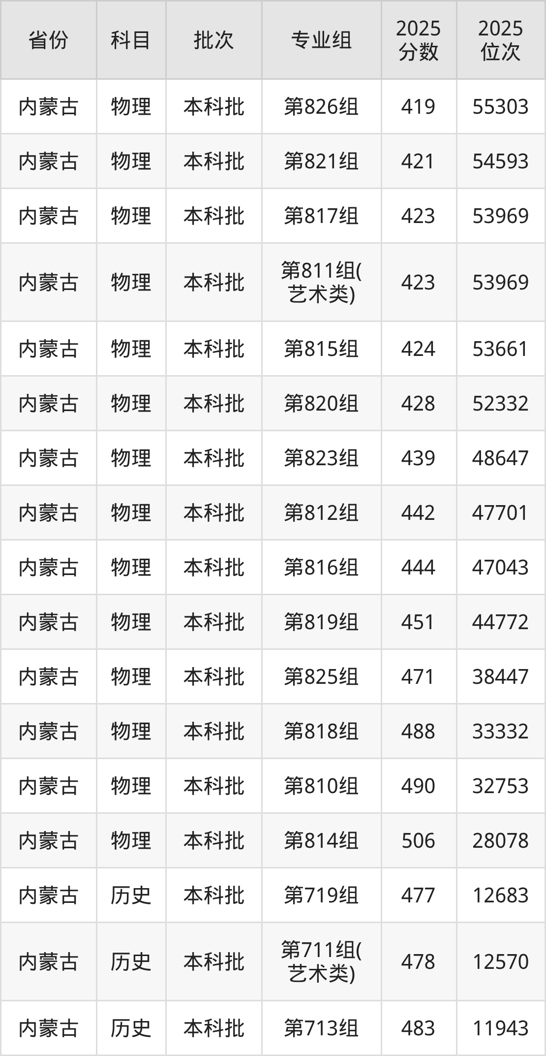 内蒙古民族大学第001组:2025年投档录取最低分为513分,录取最低位次为6866名。