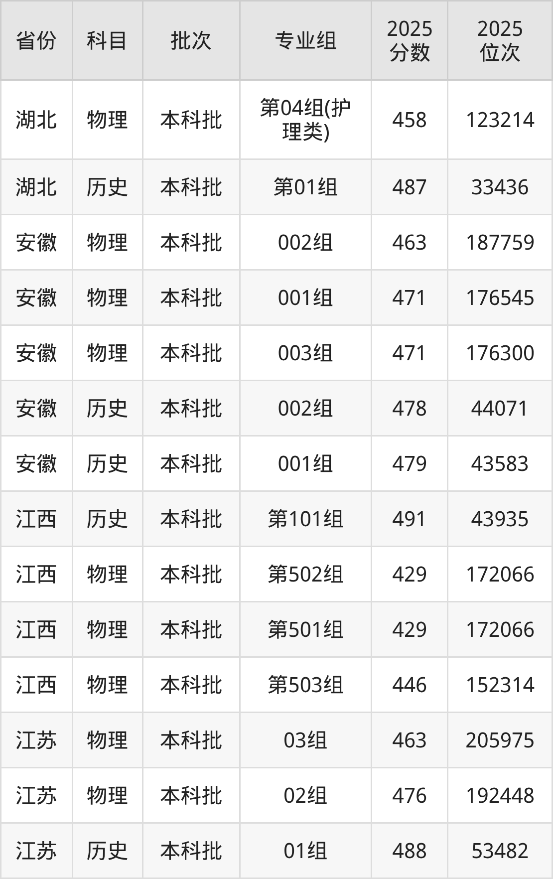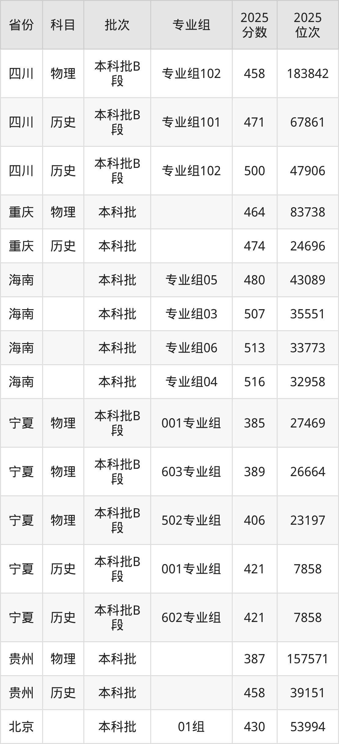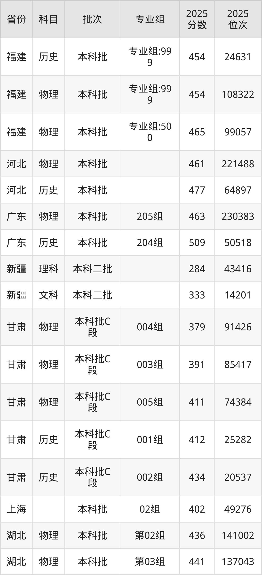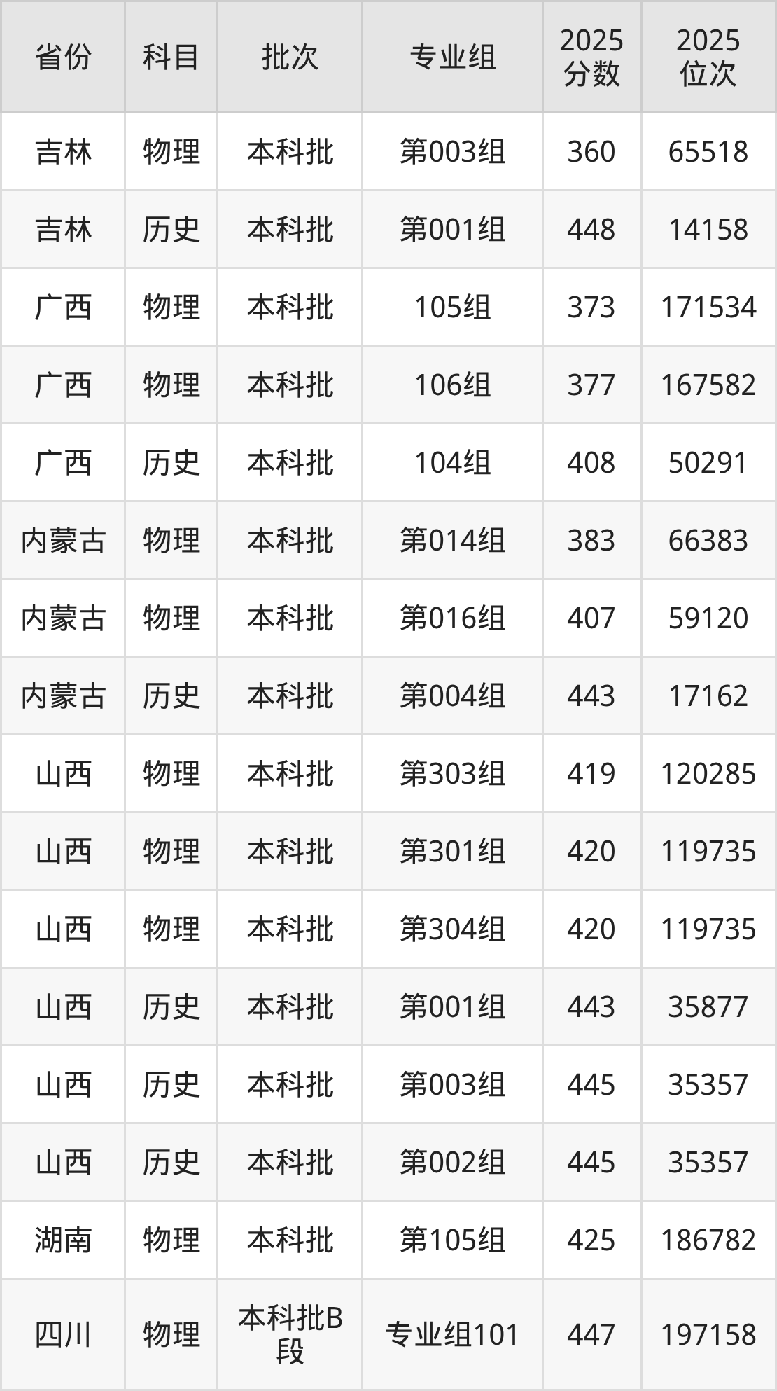 2025年在本科物理类进行招生,各专业组分数线详情如下:
