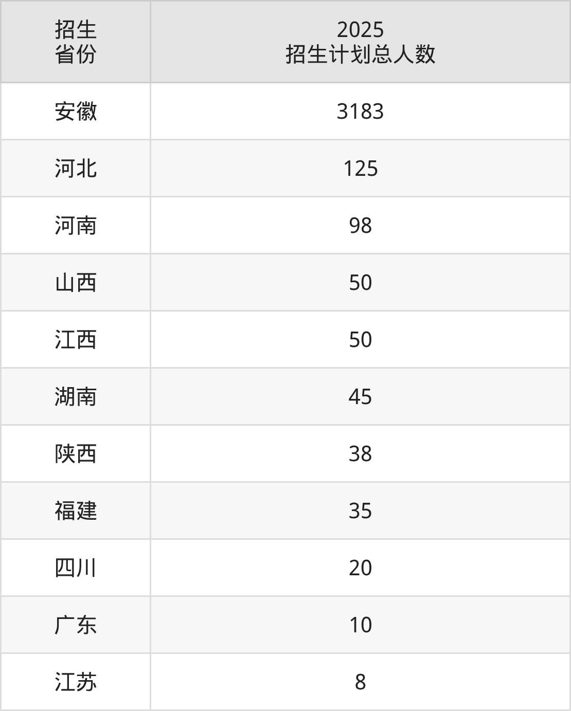 2025年合肥师范学院面向全国11个省市开展本科招生;招生专业共38个,招生人数共3662人。