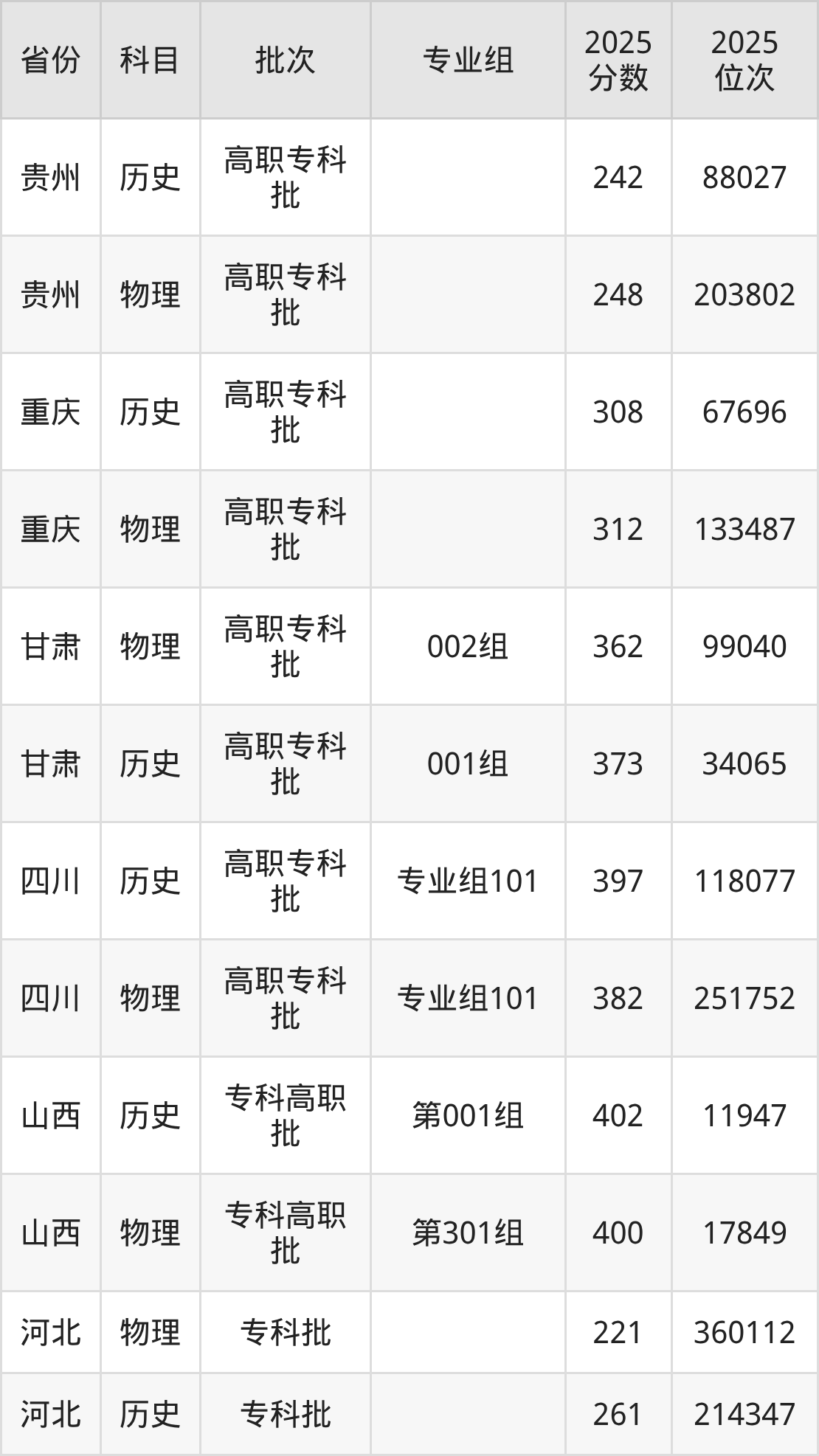 下面是2025年重庆公共运输职业学院全国录取分数线一览表,请查阅。