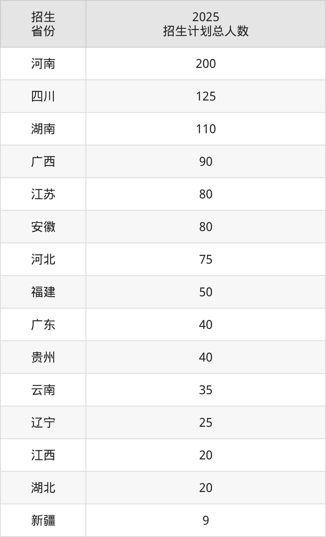 2025年浙大城市学院面向全国15个省市开展本科招生;招生专业共29个,招生人数共999人。浙大城市学院在各省具体招生人数情况如下表。