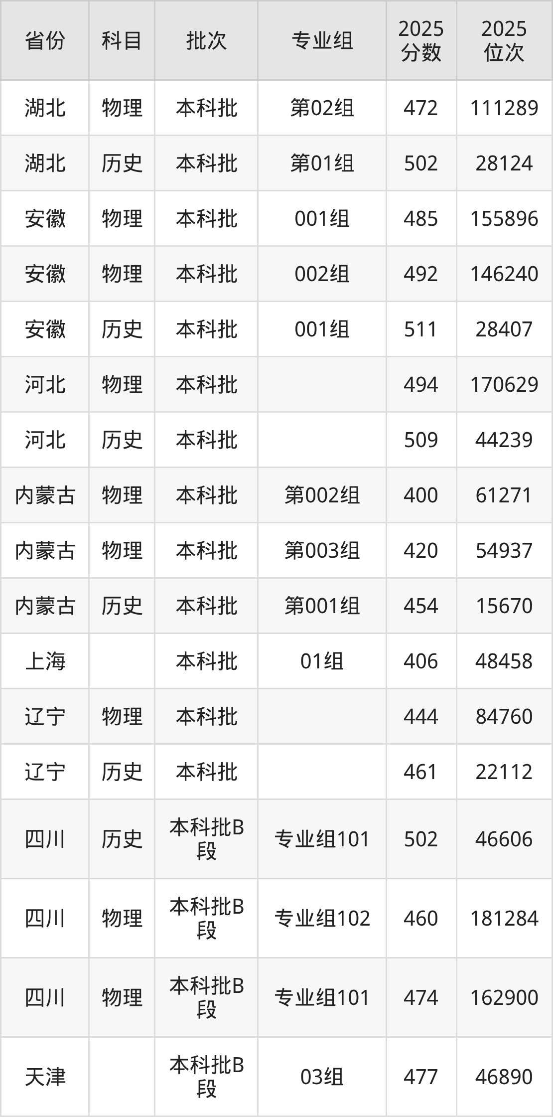 南昌大学科学技术学院002组:2025年投档录取最低分为492分,录取最低位次为146240名。