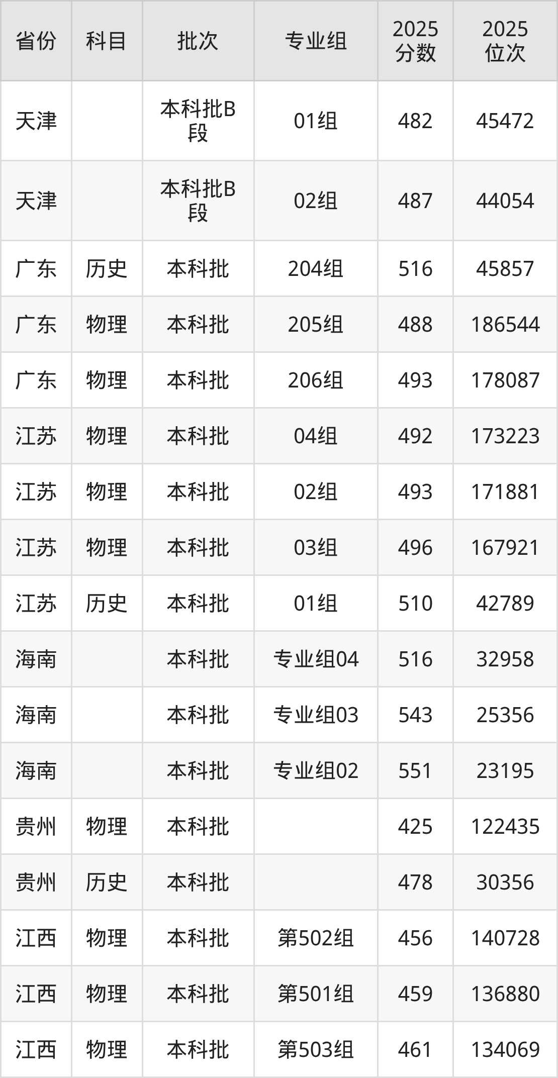 南昌大学科学技术学院04组:2025年投档录取最低分为492分,录取最低位次为173223名。