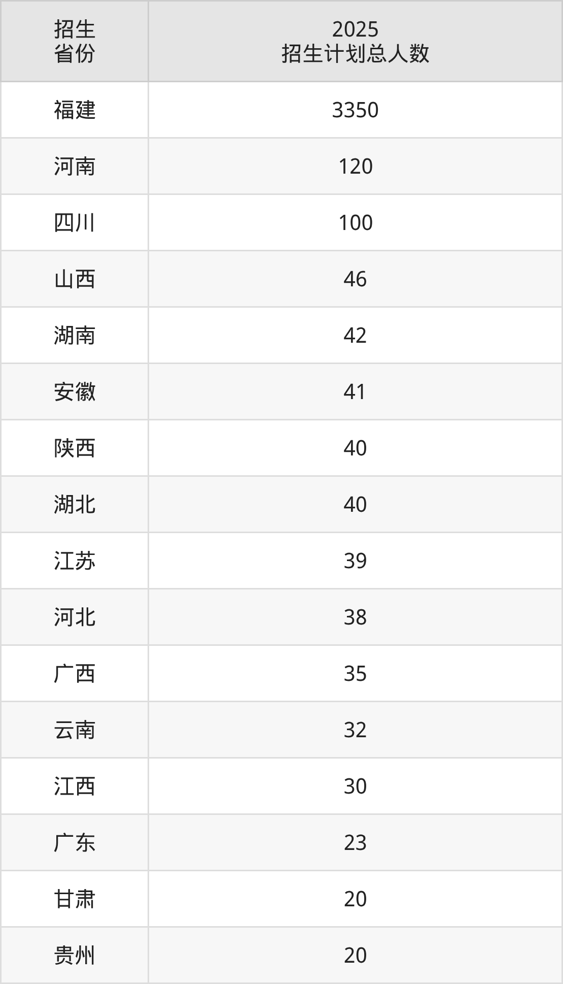 2025年阳光学院面向全国16个省市开展本科招生;招生专业共30个,招生人数共4016人。2025年在福建省招生计划总人数是3350人,其中,阳光学院在福建省招生人数最多的是电子信息工程。阳光学院在各省具体招生人数情况如下表。