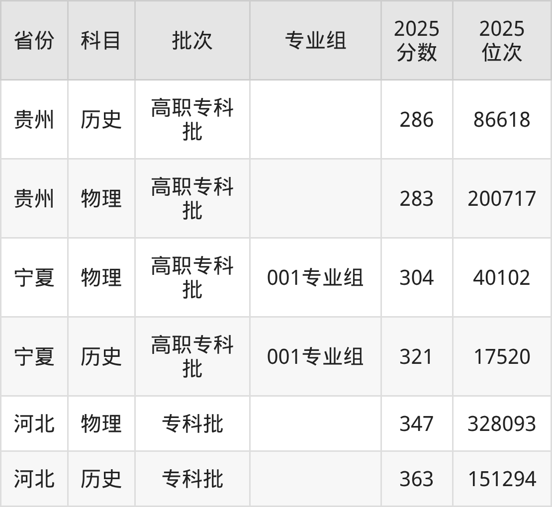 2025年投档录取最低分为283分,录取最低位次为200717名。