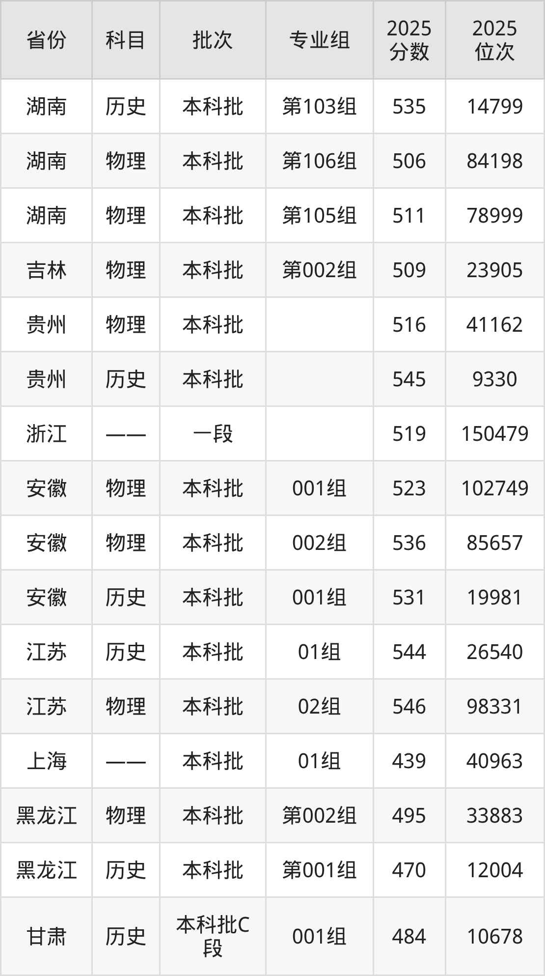 普通类本科历史类最低544分,本科物理类最低546分