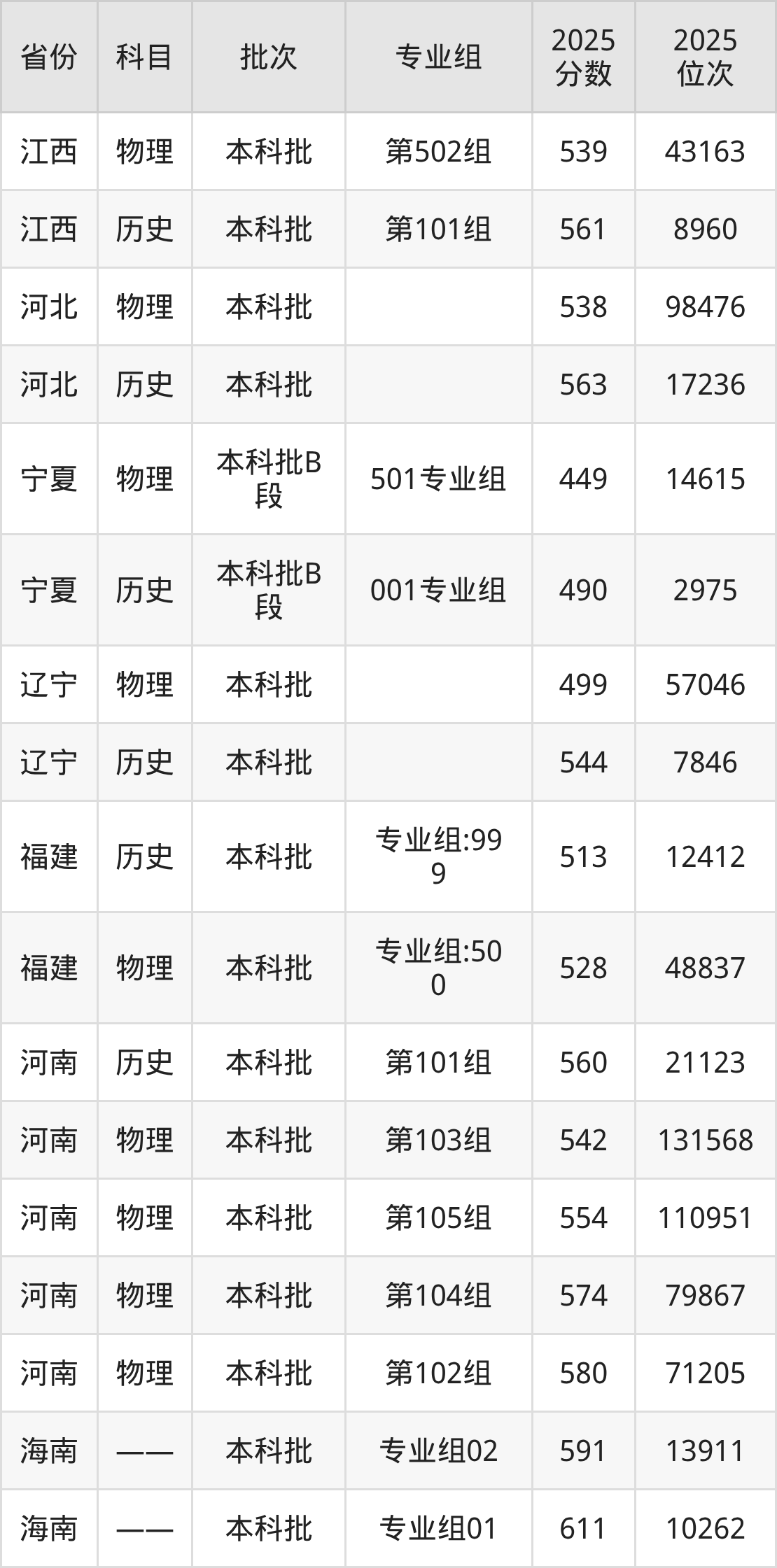 普通类本科历史类最低538分,本科物理类最低511分