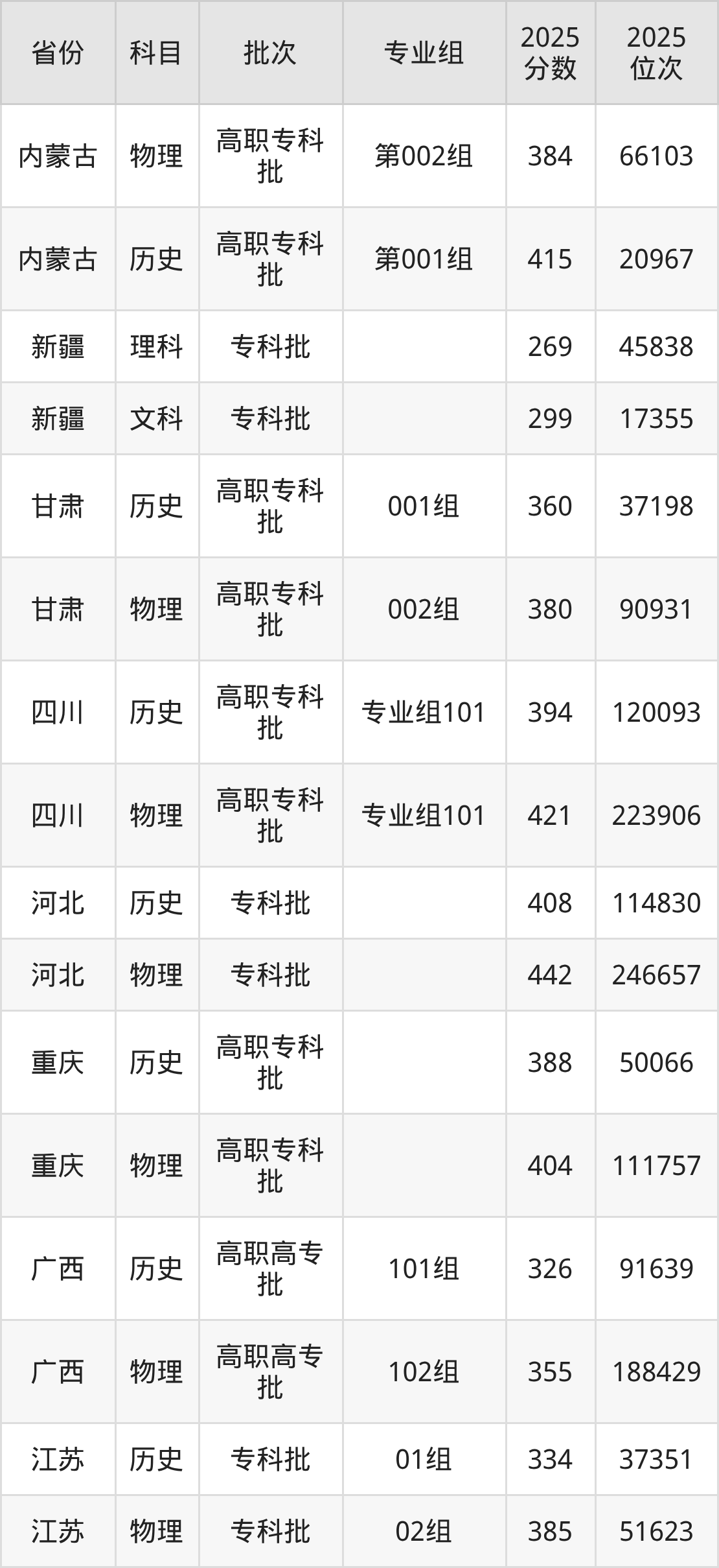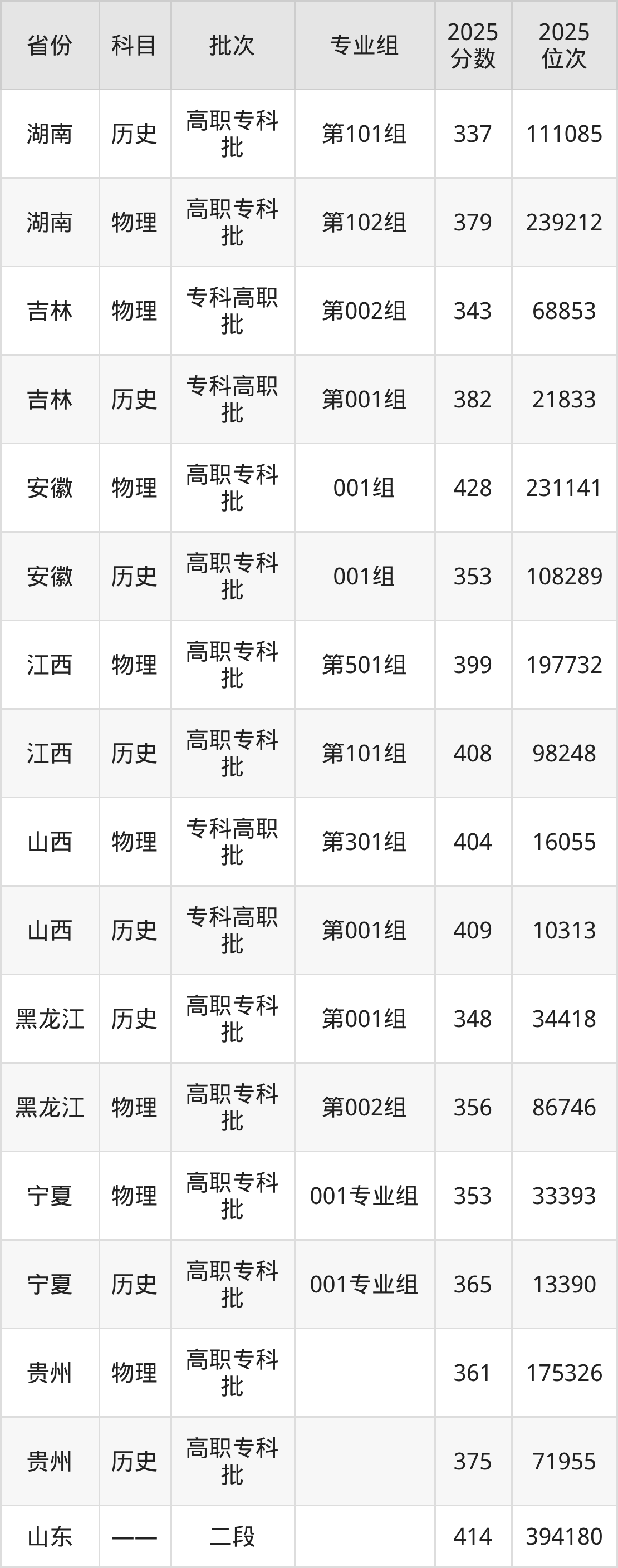 下面是2025年陕西航空职业技术学院全国录取分数线一览表,请查阅。