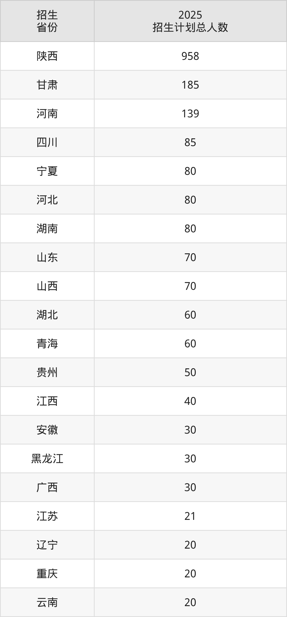 2025年陕西航空职业技术学院面向全国23个省市开展专科招生;招生专业共36个,招生人数共2179人。2025年在陕西省招生计划总人数是958人,其中,陕西航空职业技术学院在陕西省招生人数最多的是机械设计与制造。陕西航空职业技术学院在各省具体招生人数情况如下表。