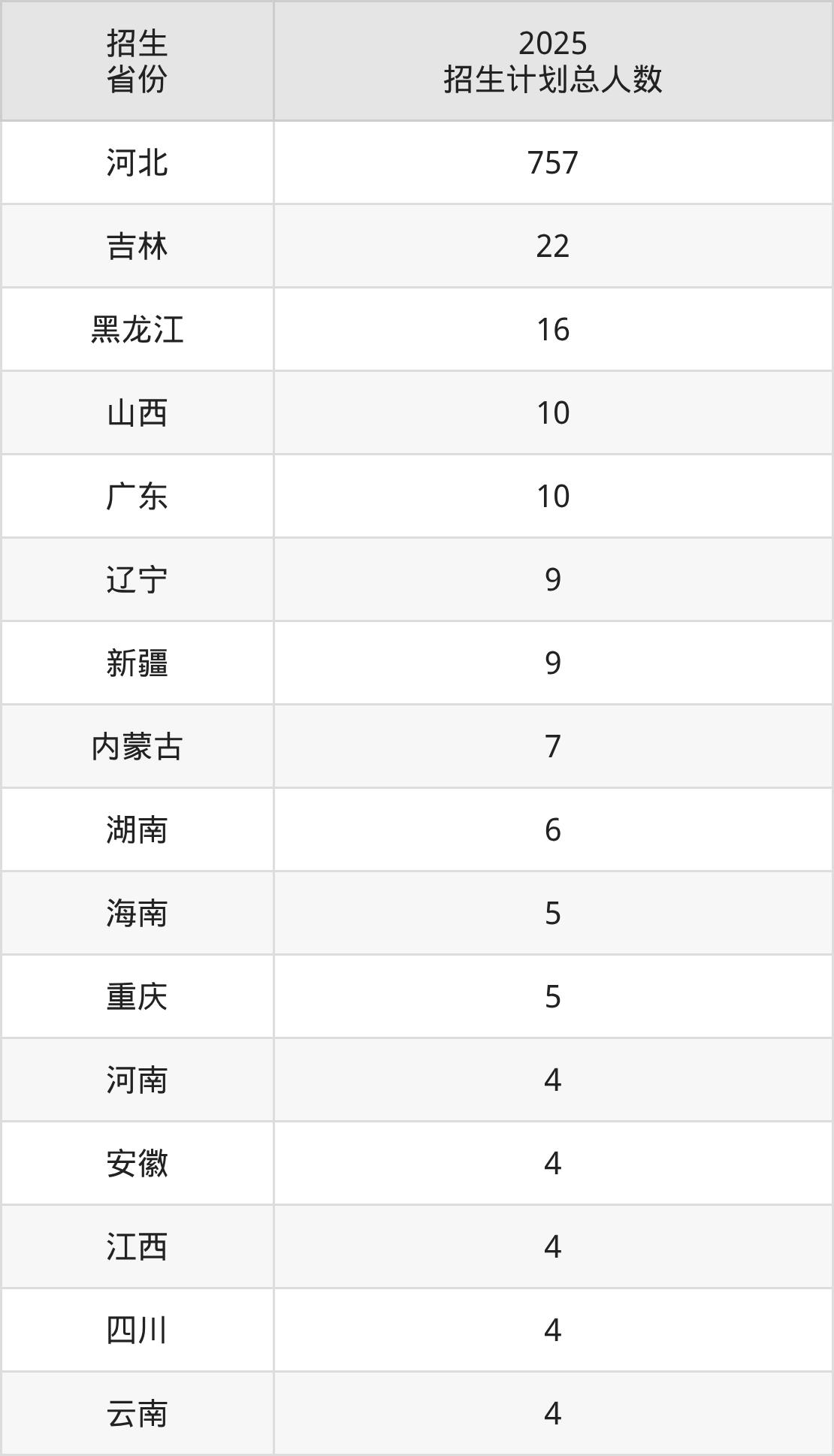 2025年河北建材职业技术学院面向全国16个省市开展专科招生;招生专业共23个,招生人数共876人。2025年在河北省招生计划总人数是757人,其中,河北建材职业技术学院在河北省招生人数最多的是轮机工程技术。河北建材职业技术学院在各省具体招生人数情况如下表。