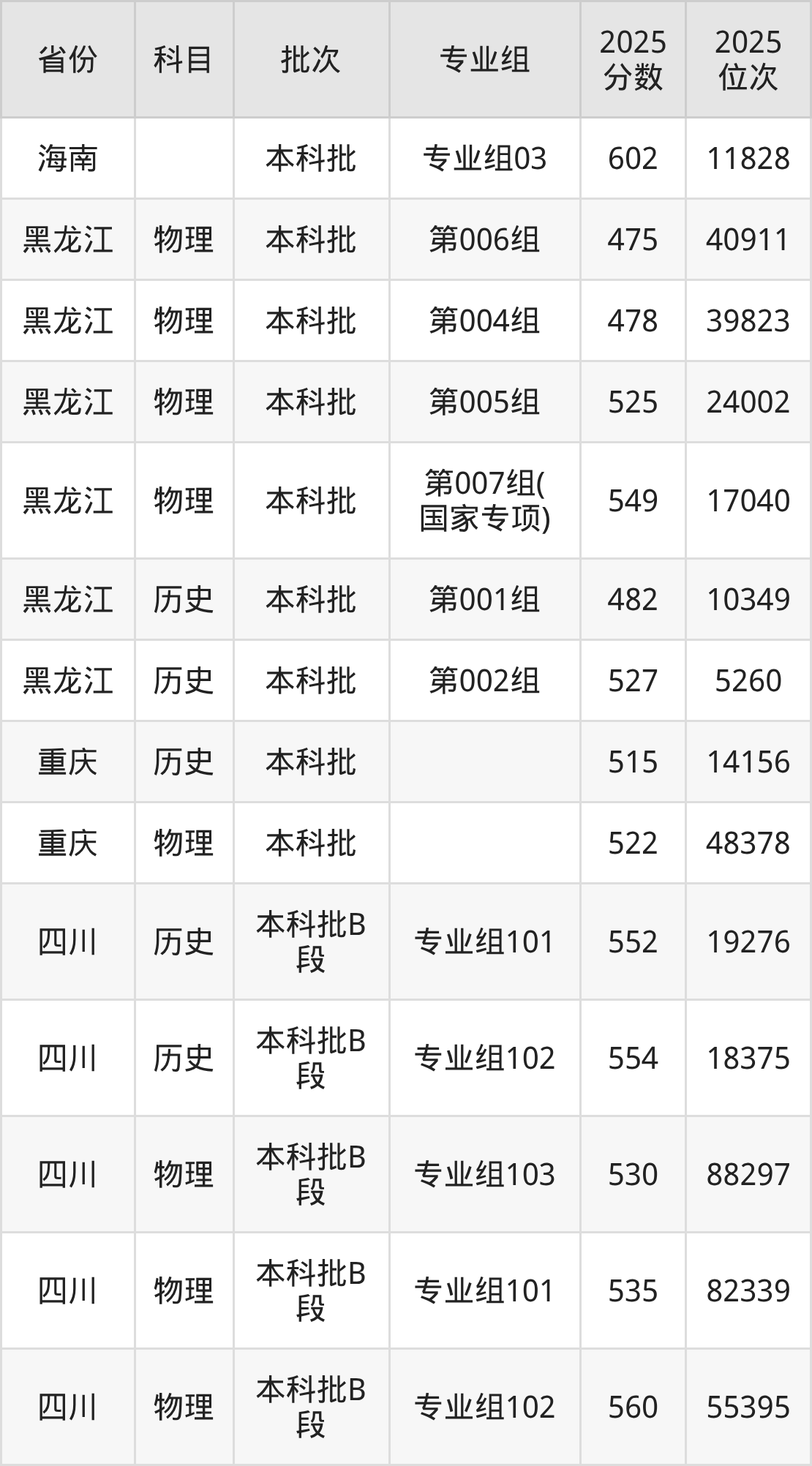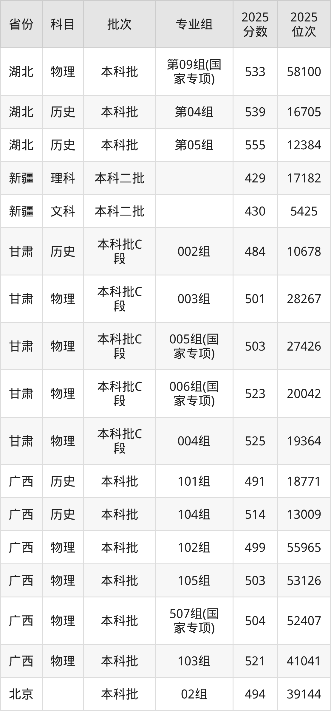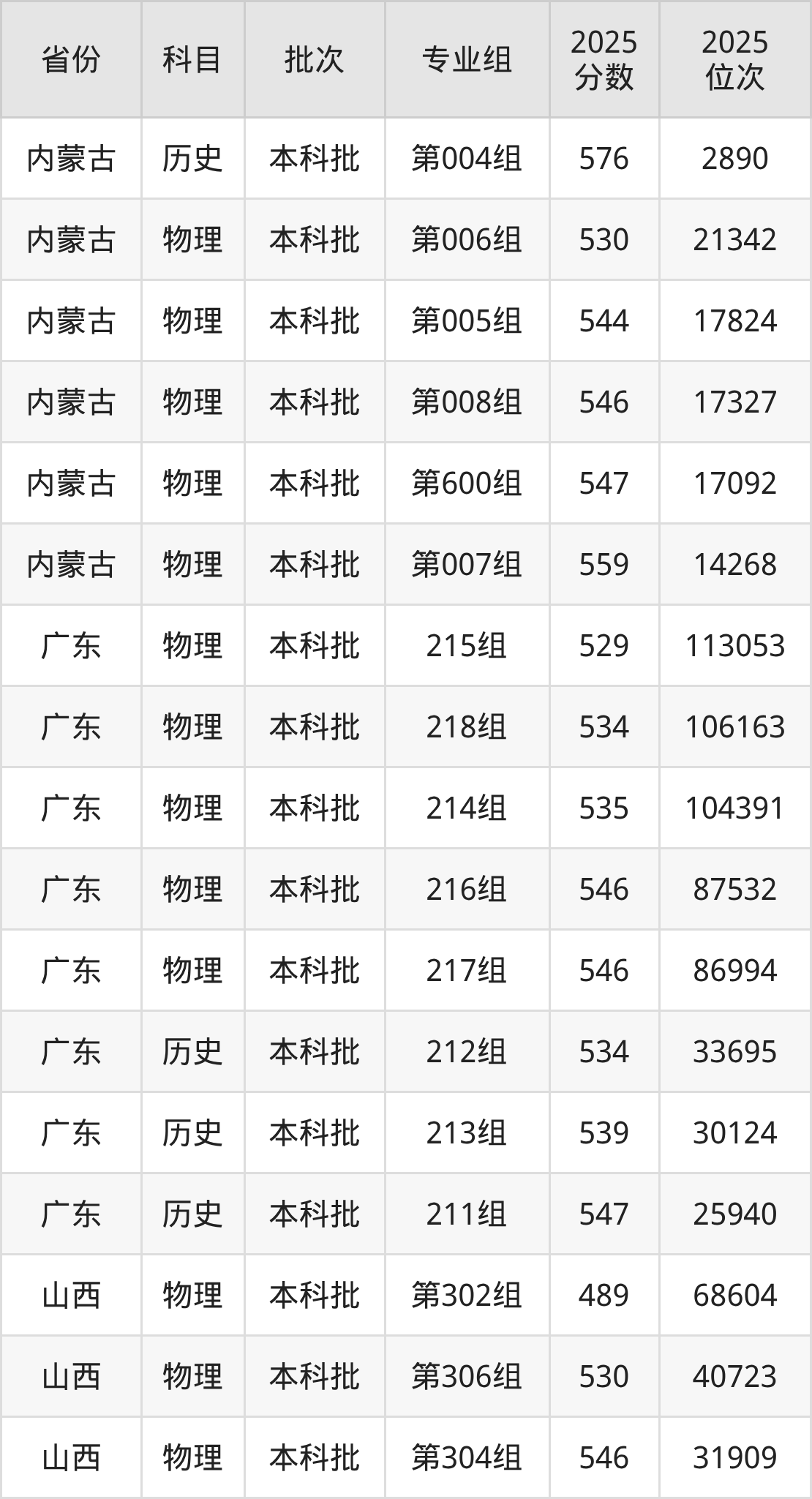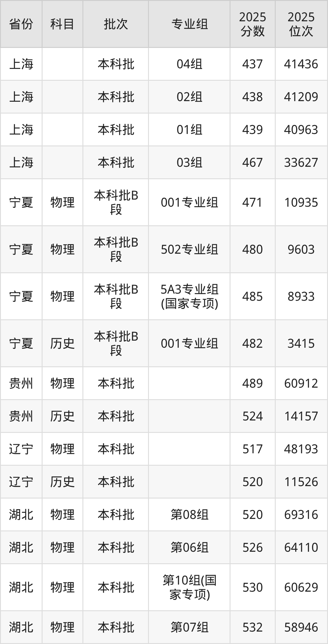 普通类本科物理类最低489分,本科历史类最低524分